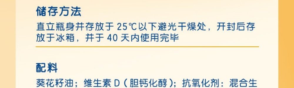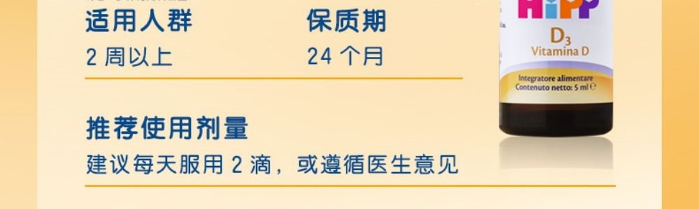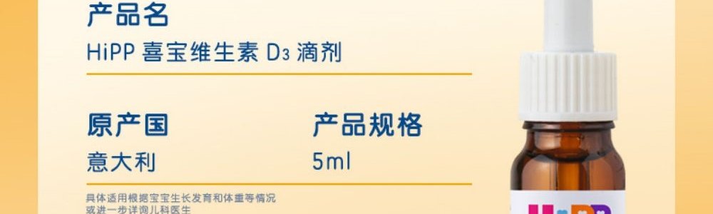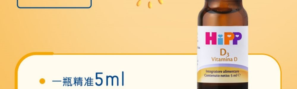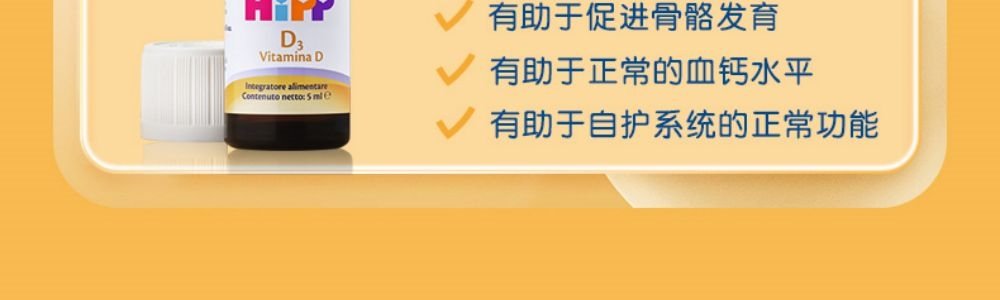 【保税】德国 喜宝(HiPP)维生素D3滴剂 5ml 助力宝宝钙吸收 长得快 身体棒