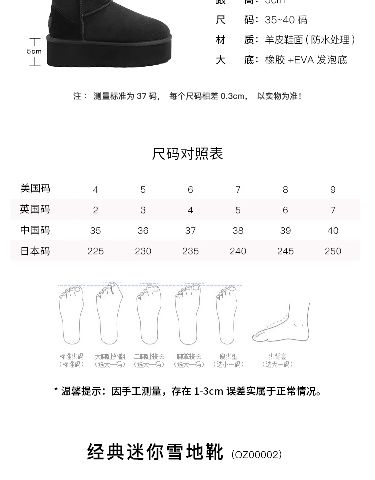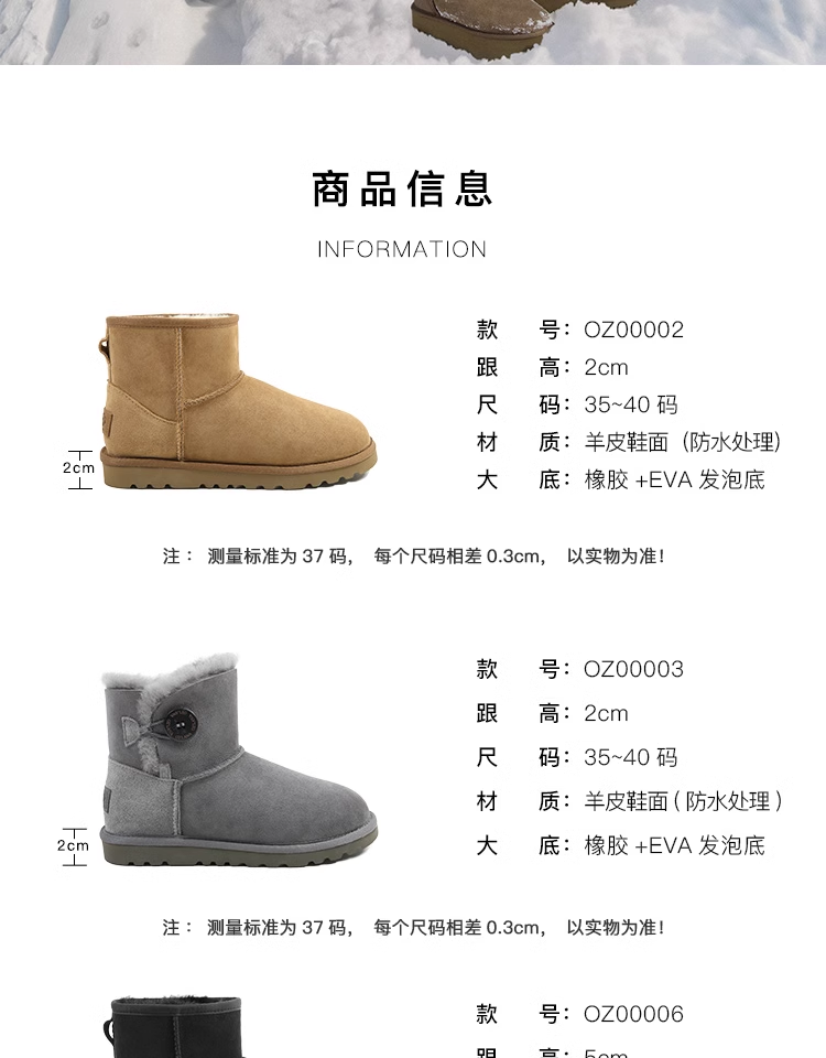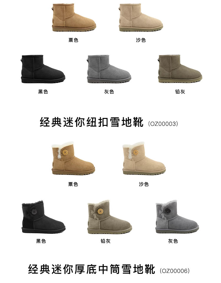 OZLANA 3款雪地靴 2024冬季新品女款加绒厚底羊皮皮毛一体防水中筒靴