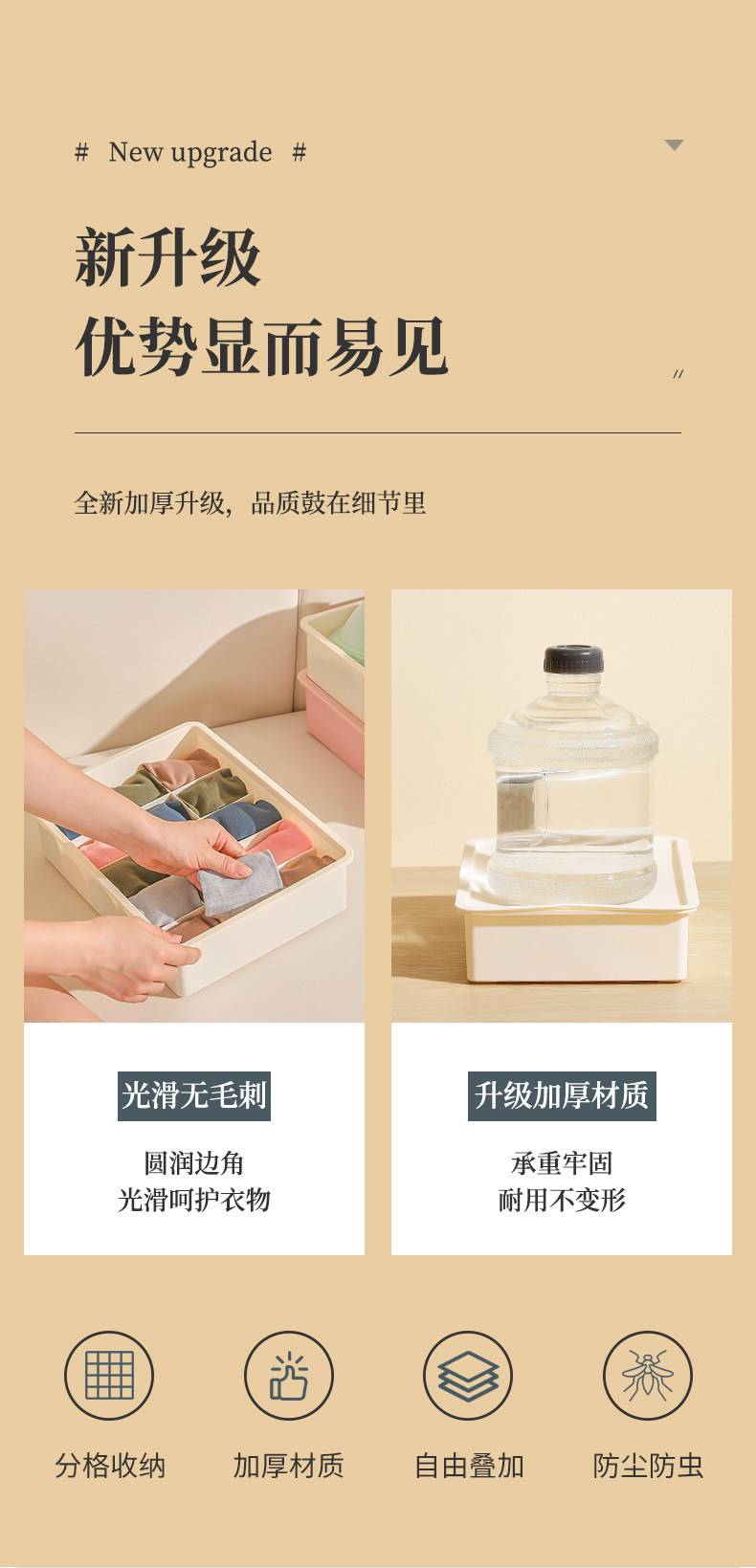 「3件套!收纳“管家”」家用内衣袜子收纳盒塑料化妆品整理盒储物内裤文胸内衣分格收纳盒