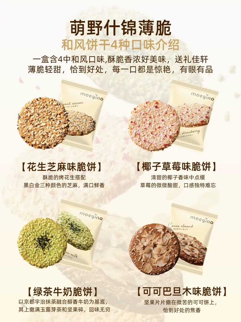 日本阡朋萌野盒装薄脆饼干(32枚)153.6g/051130 一盒含4种口味薄脆清甜恰到好处