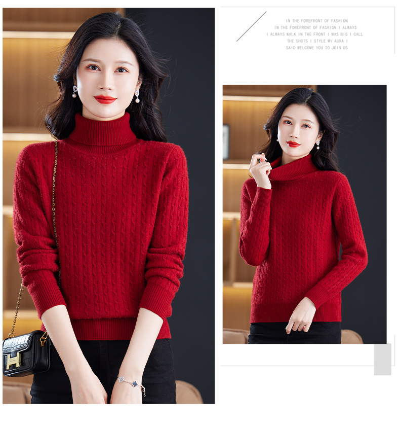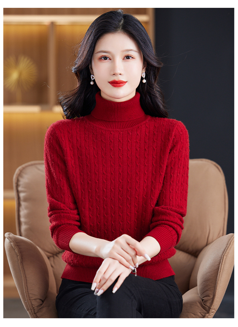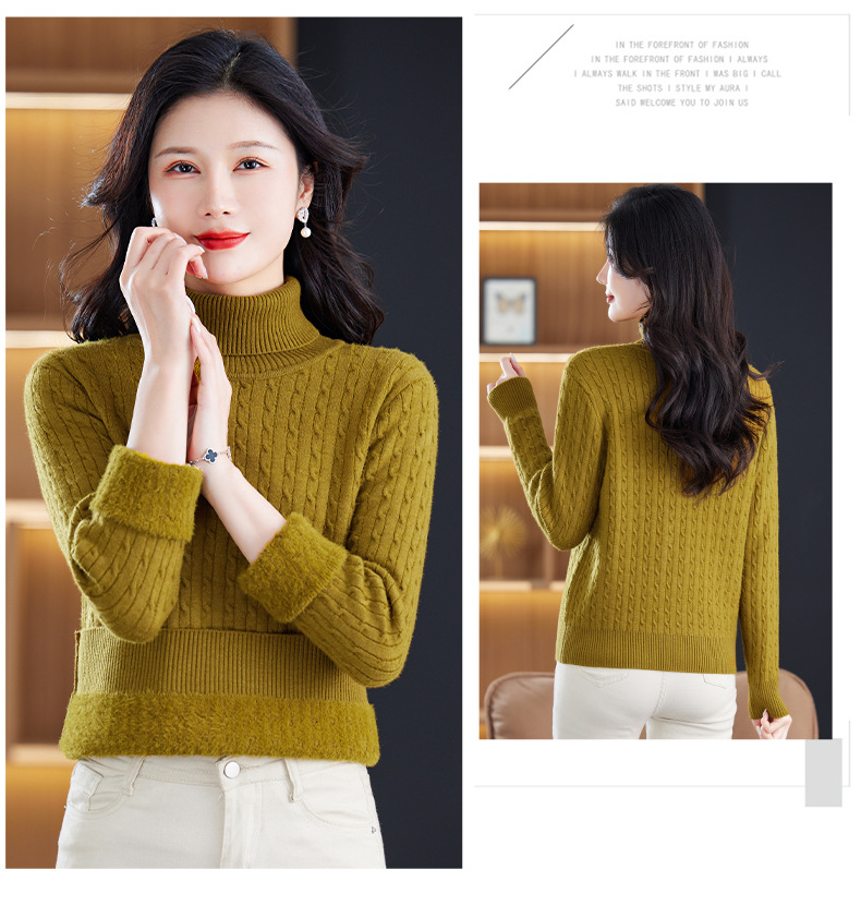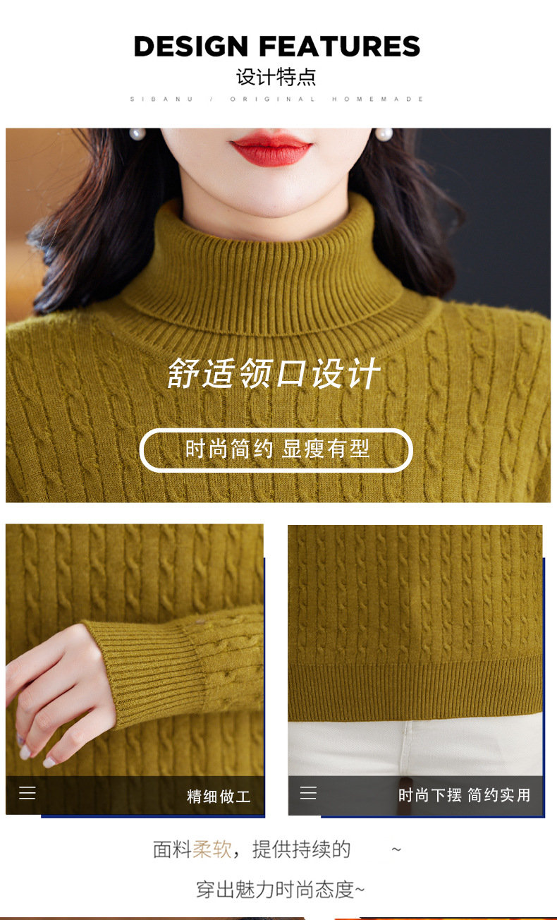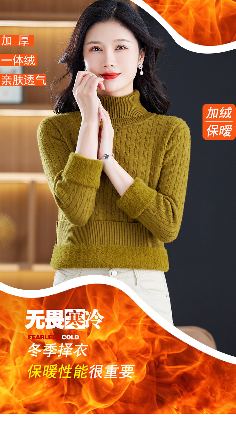 冬季新款,高领螺纹短款女士毛衣套头加厚加绒内搭针织打底衫CC-9-9958