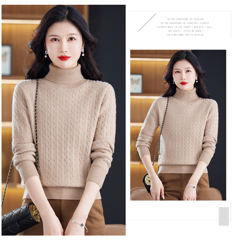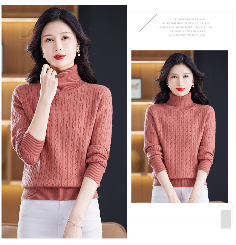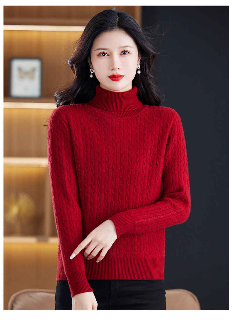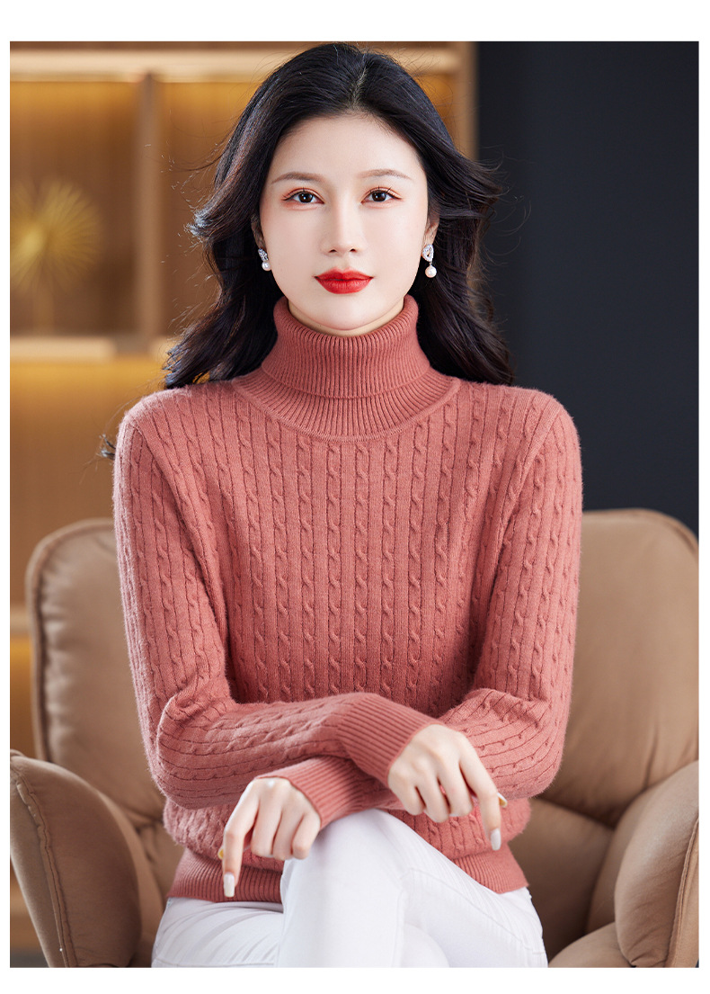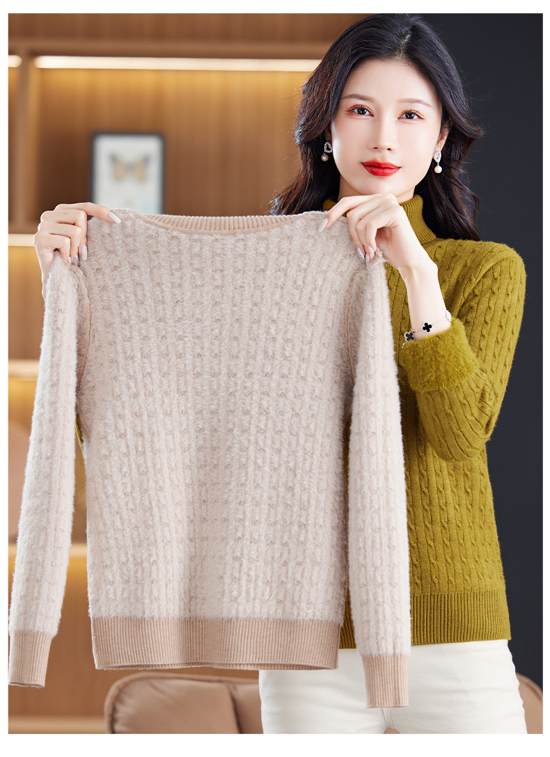 冬季新款,高领螺纹短款女士毛衣套头加厚加绒内搭针织打底衫CC-9-9958