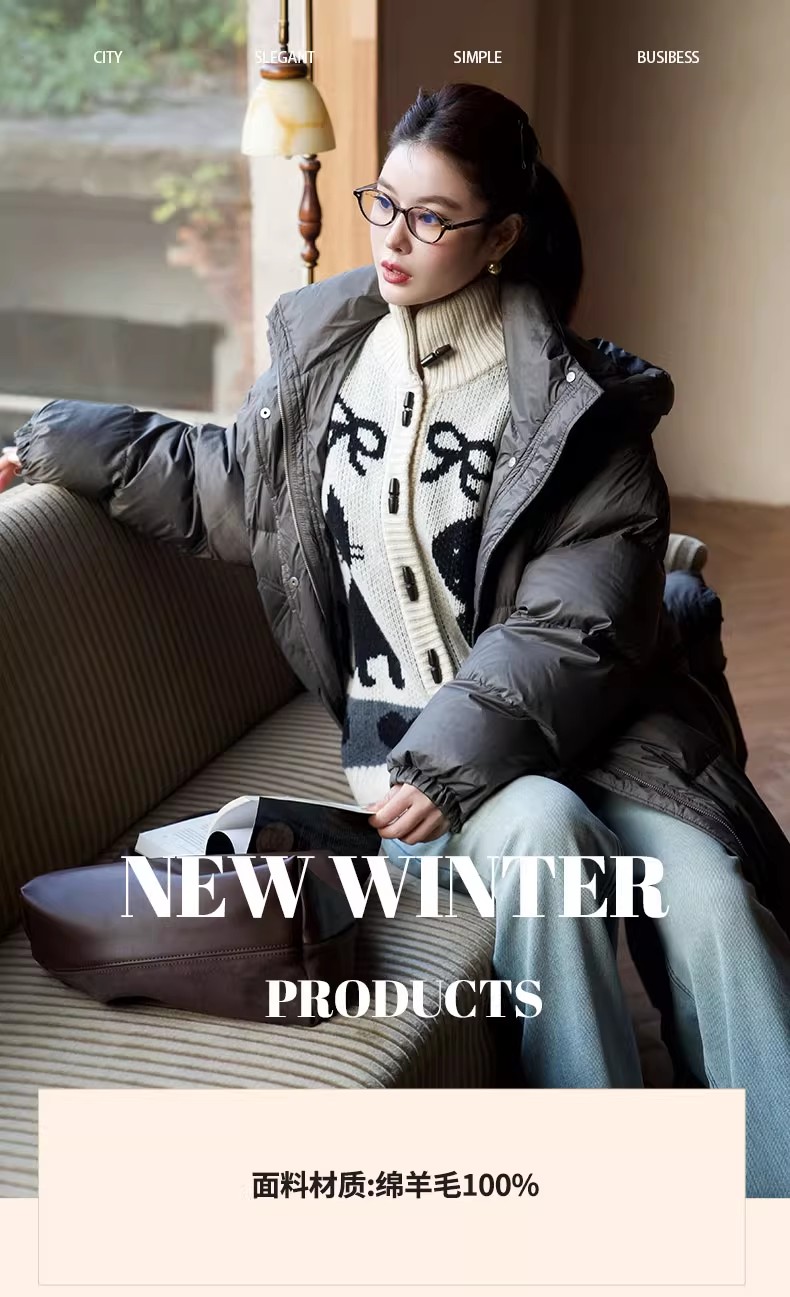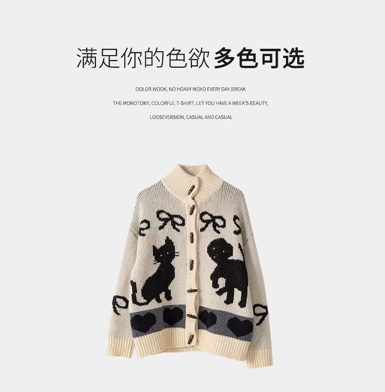 【门店同款】ENJOY冬季蝴蝶结小猫牛角扣针织外套 159873591
