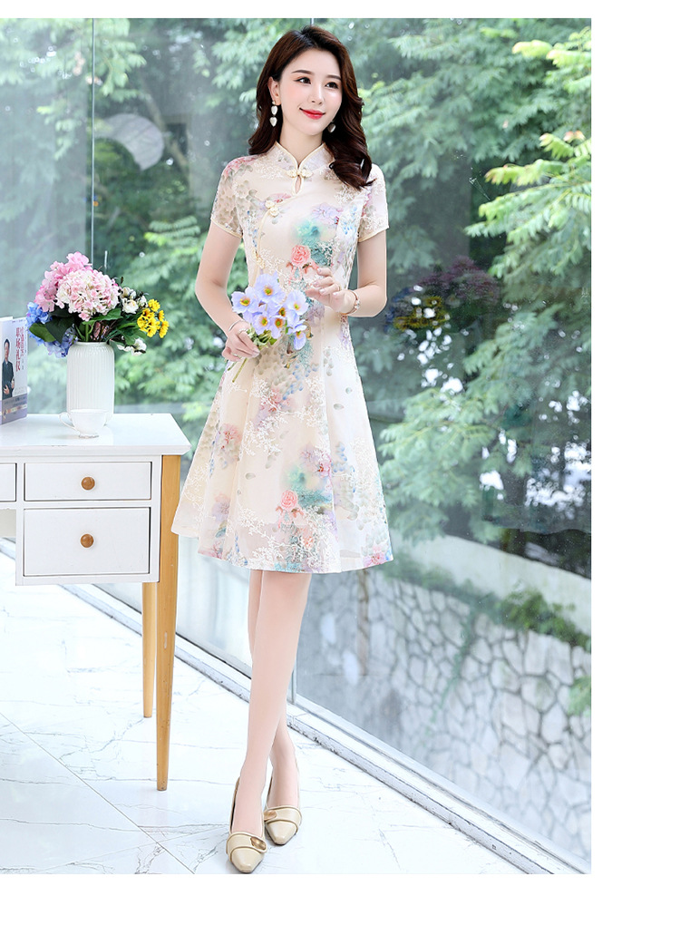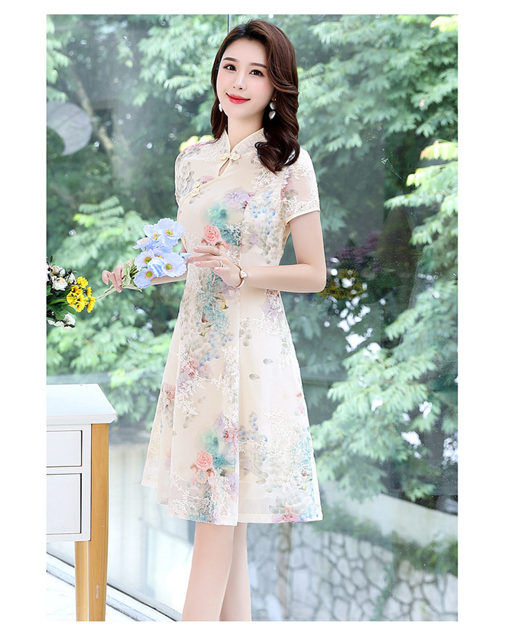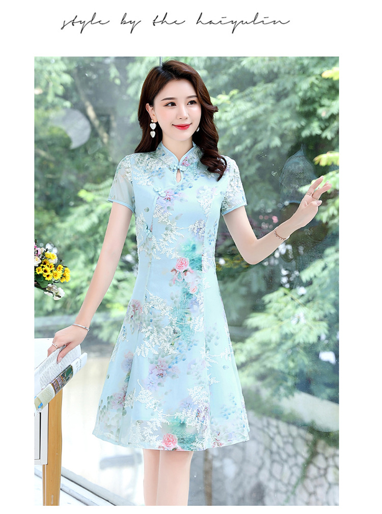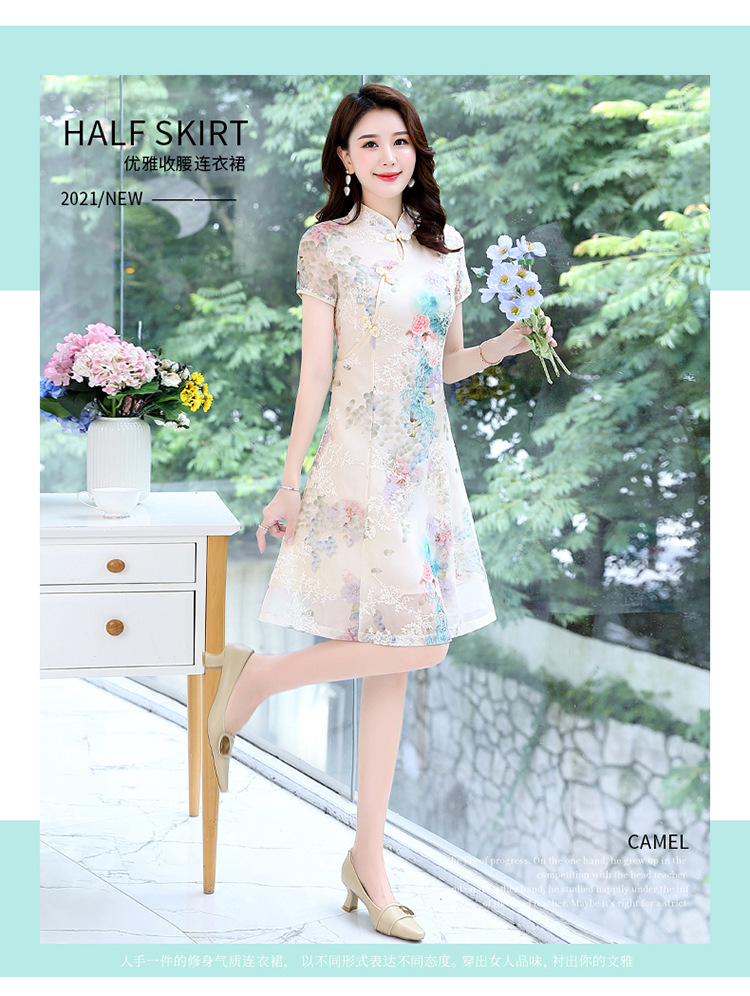 2022夏季新款时尚简约优雅复古式领口设计收腰显瘦中长款连衣裙 HR-XGJ2133