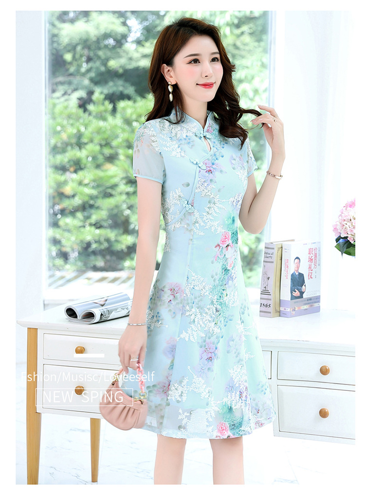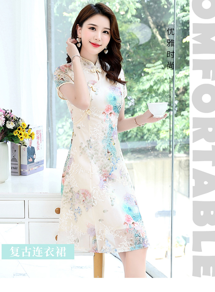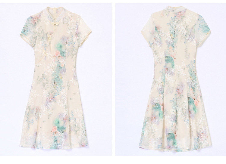 老上海复古改良新中式长款七分袖旗袍大摆裙2023冬新款旗袍GX-21804