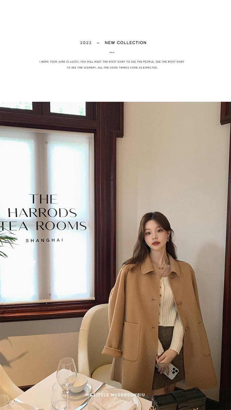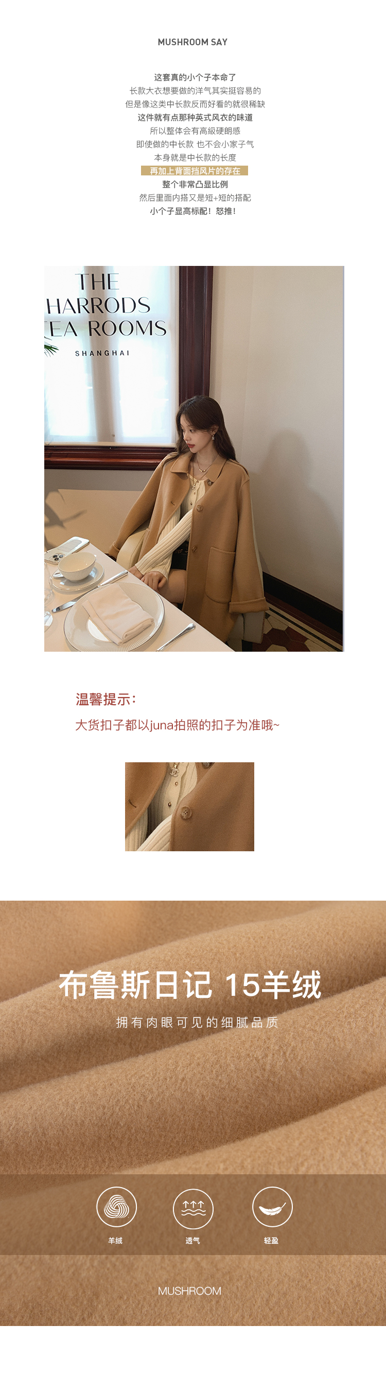 金蘑菇菇 布鲁斯日记 / 小个子本命长度 中长款英伦风羊绒大衣
