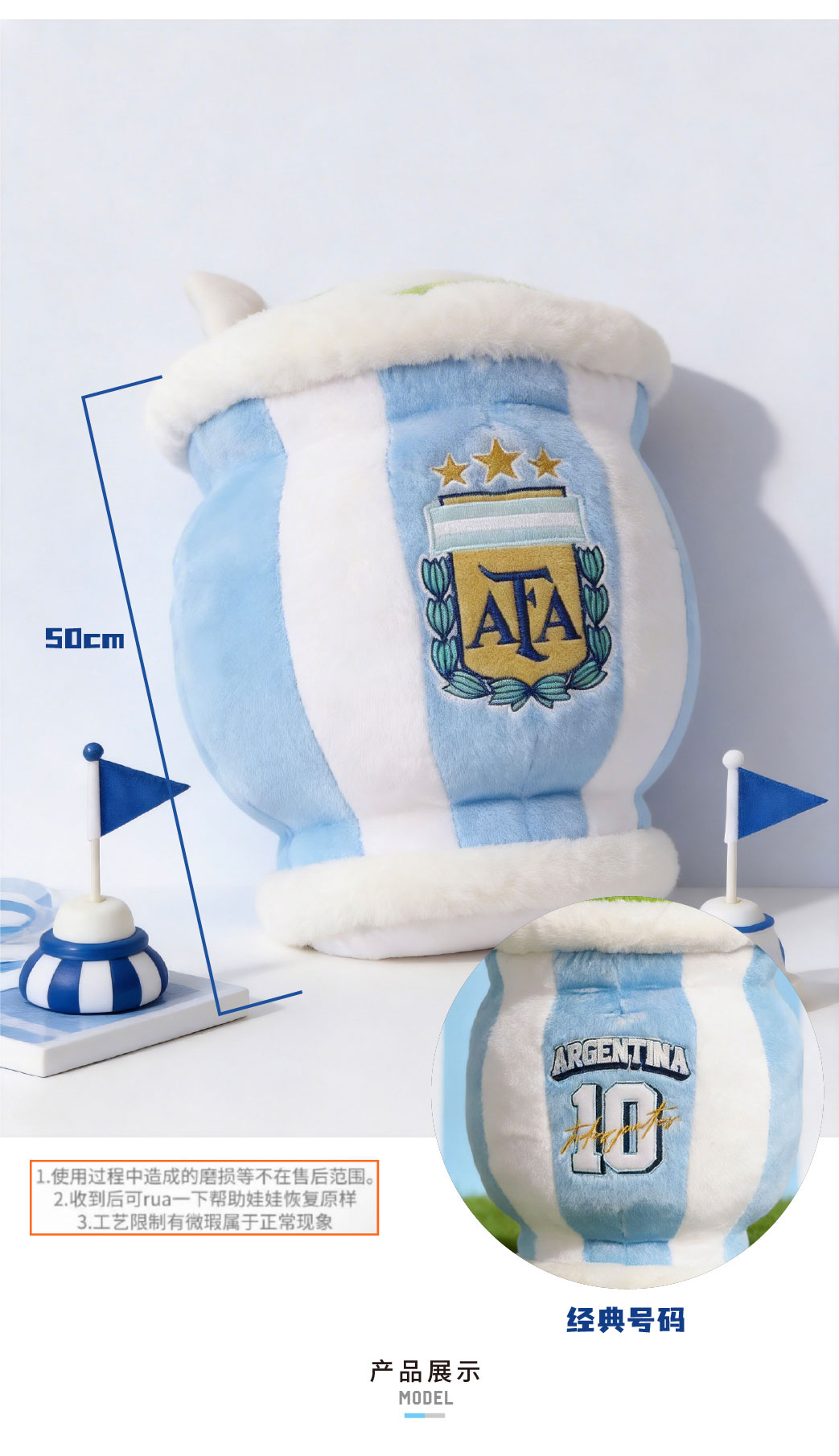 【官方正版】阿根廷国家队|马黛茶杯毛绒摆件周边梅西50cm毛绒