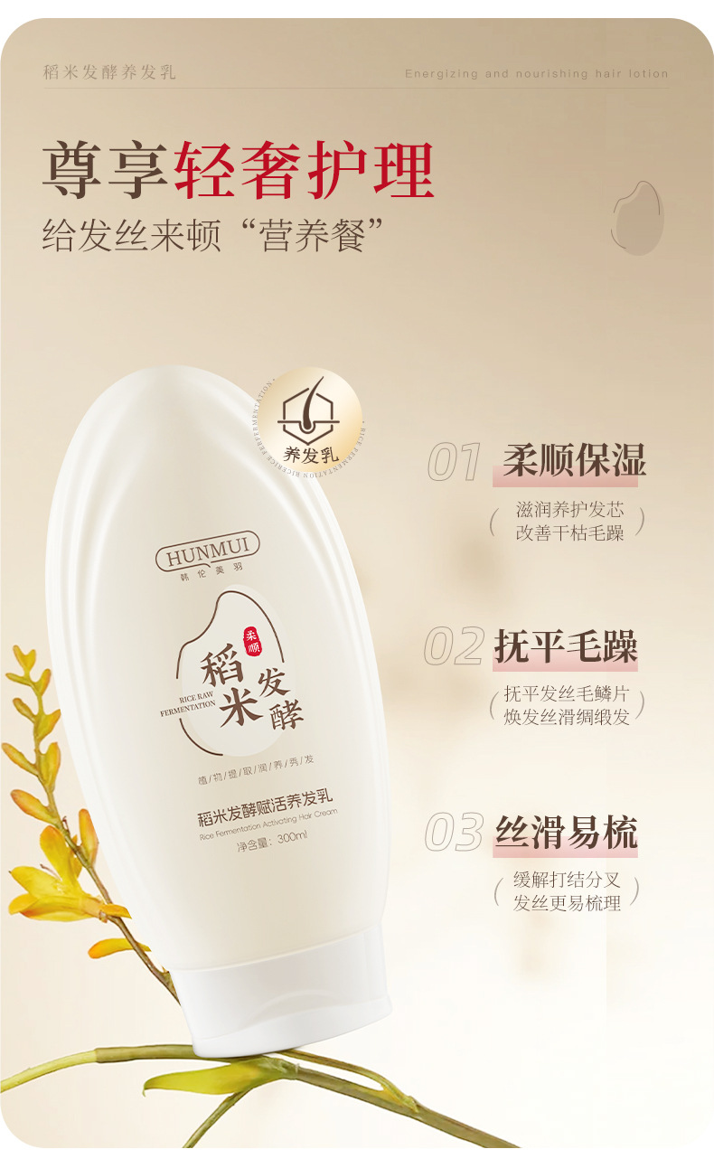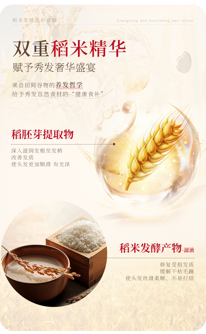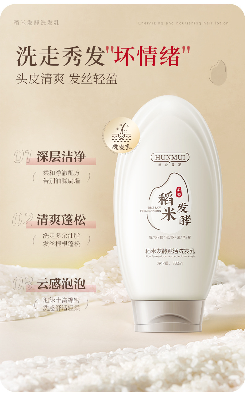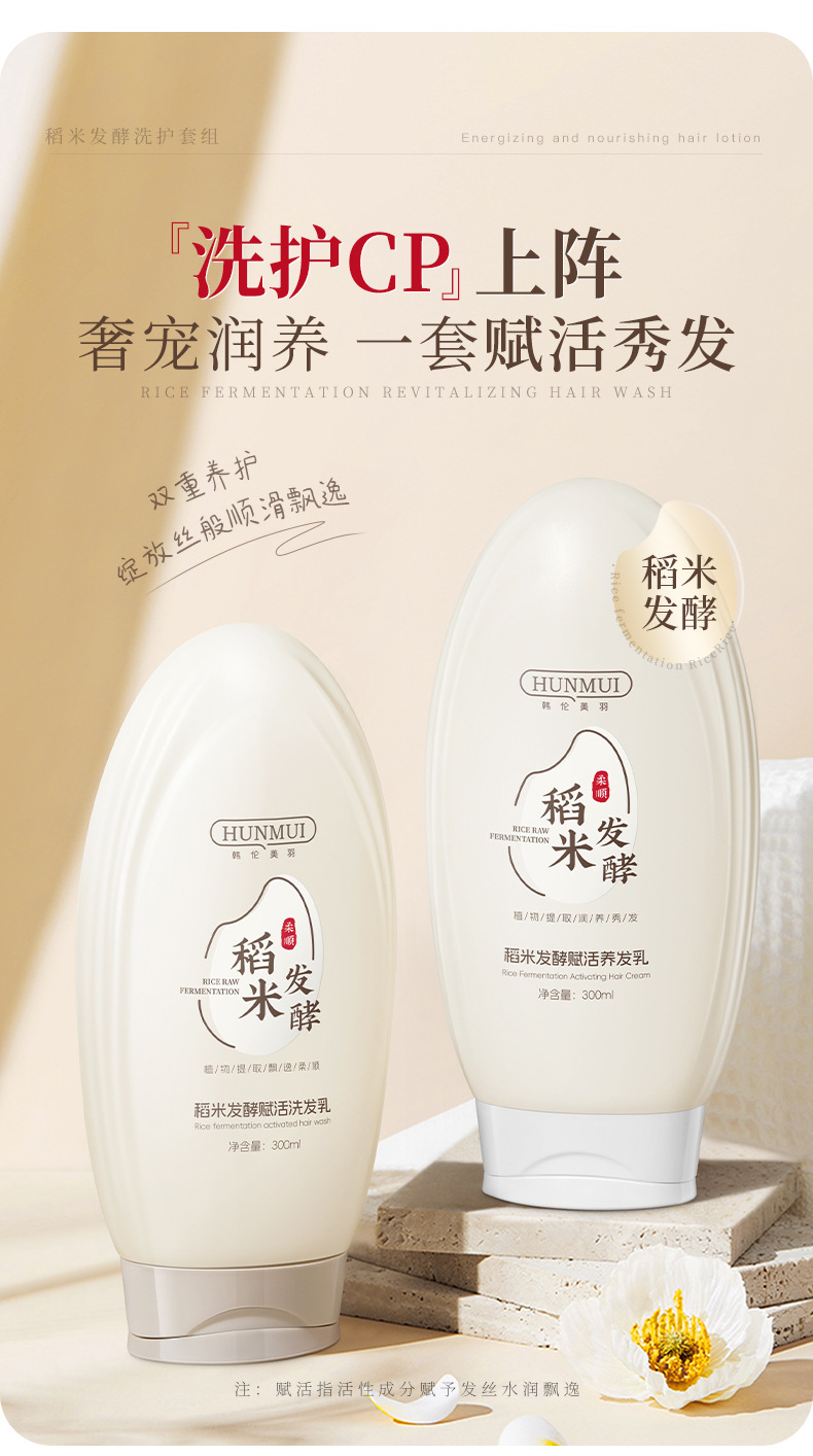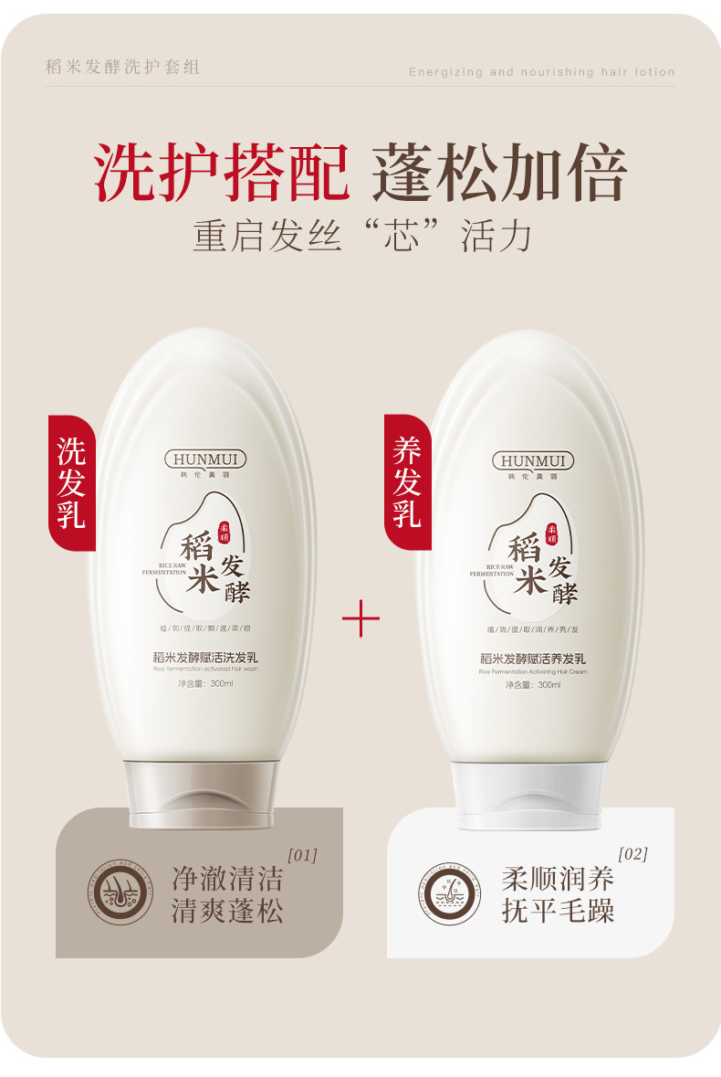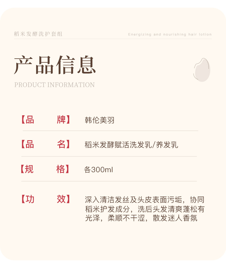 【稻米原浆 古法养发】韩伦美羽稻米原浆赋活养发洗护组合 稻米精华 双重专利+进口成分 重现飘逸秀发 300ml/瓶