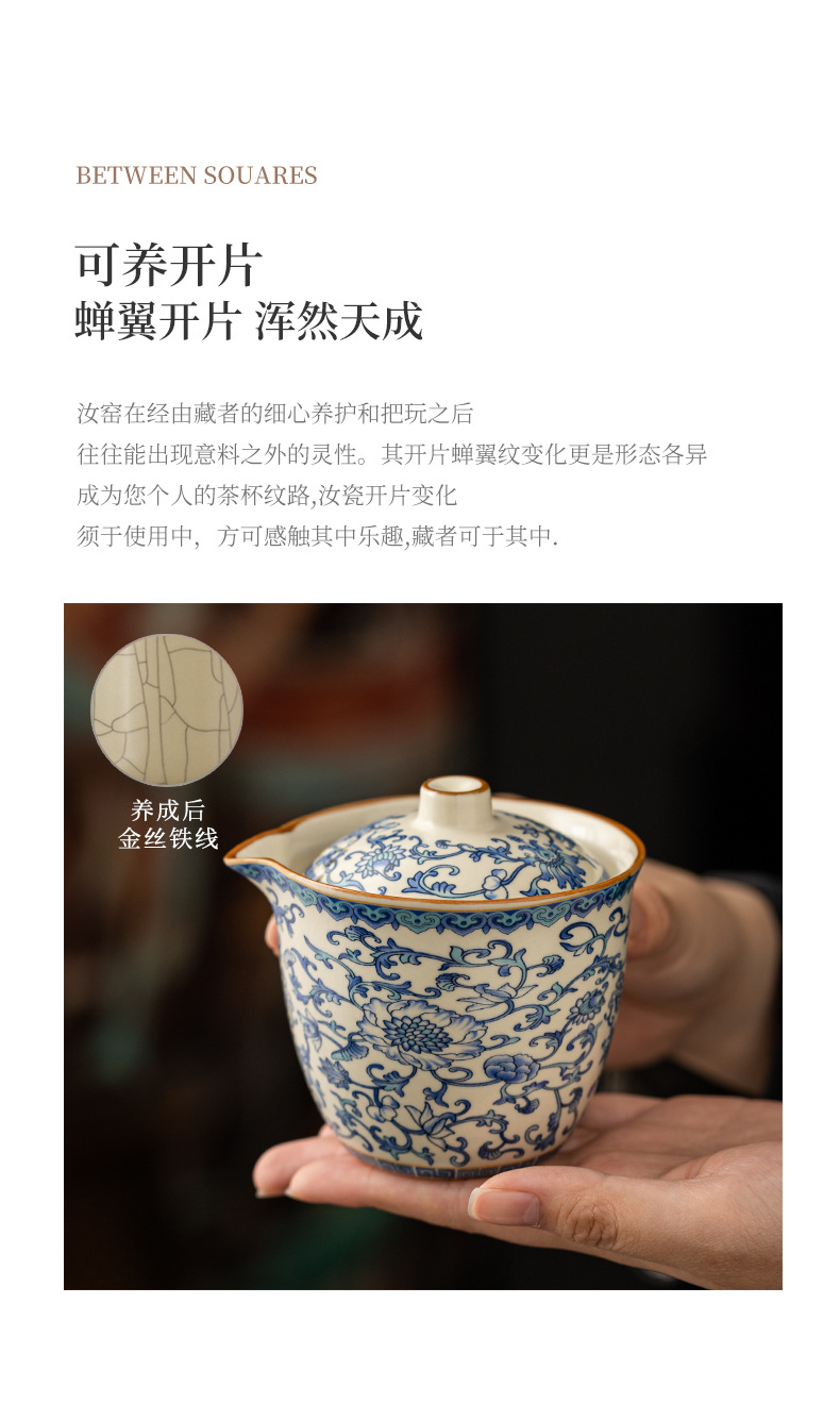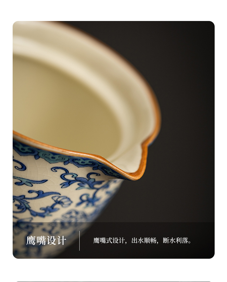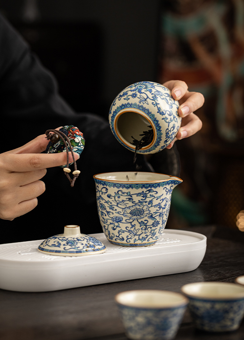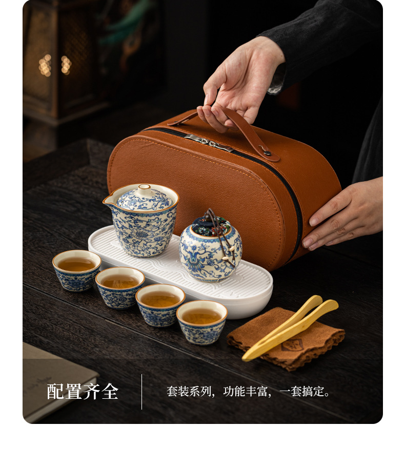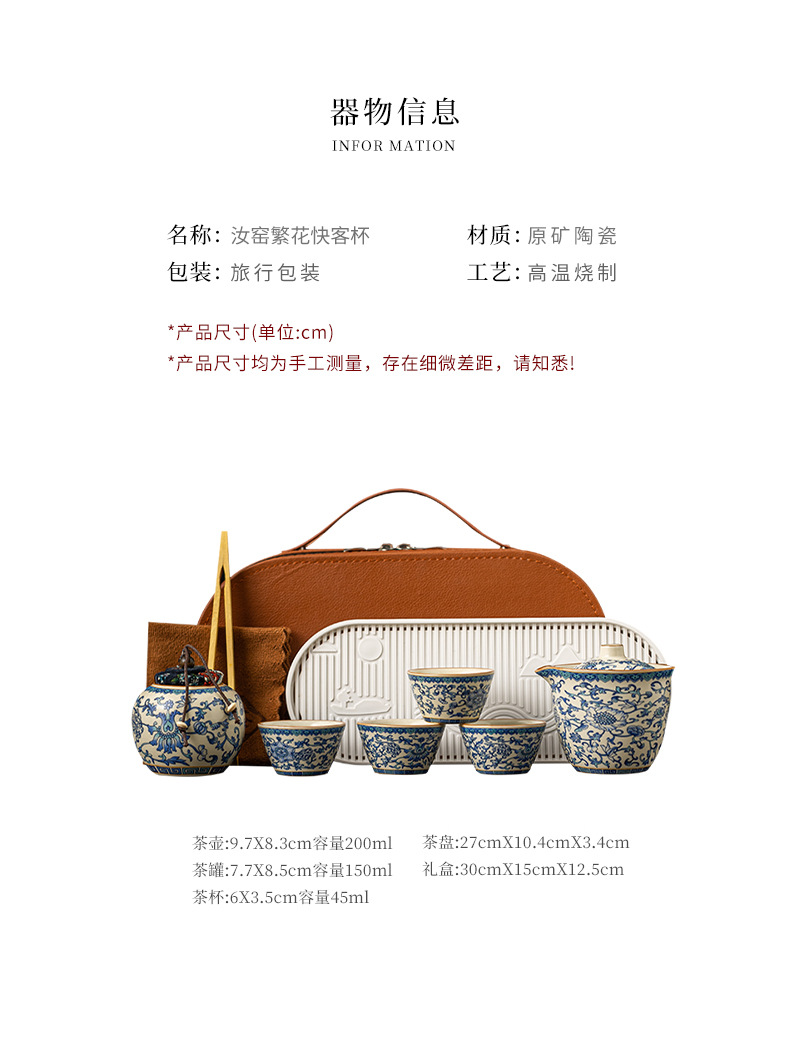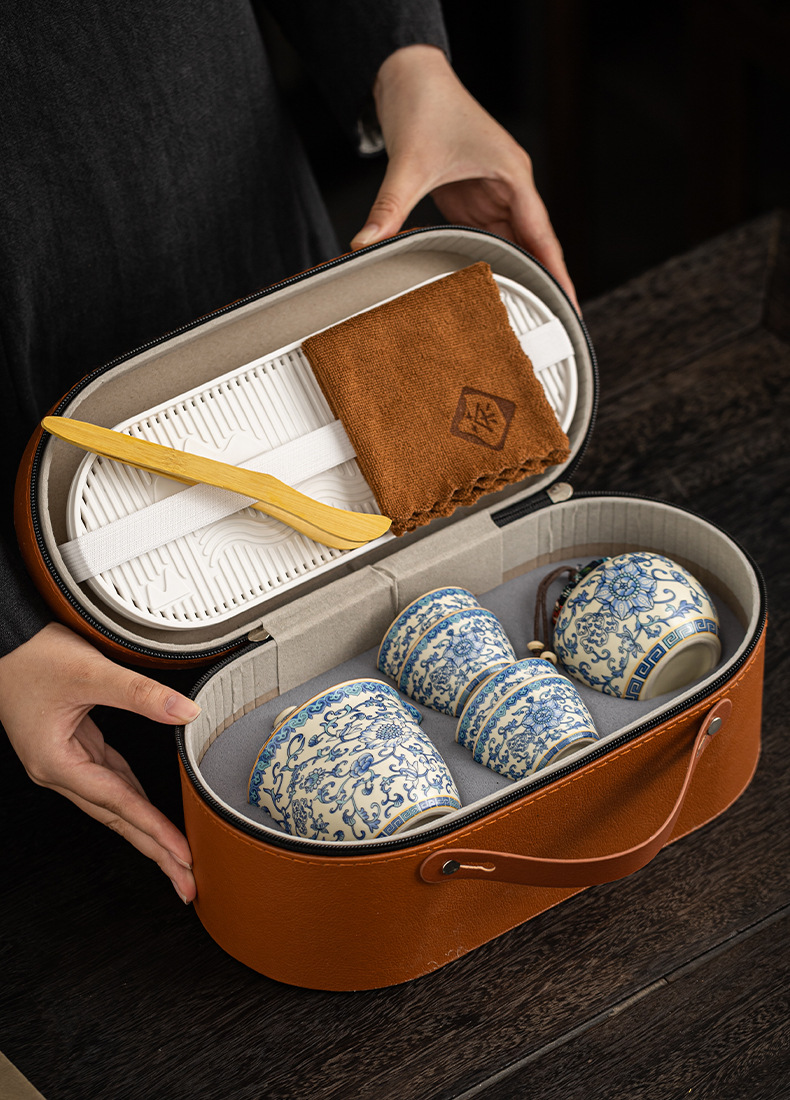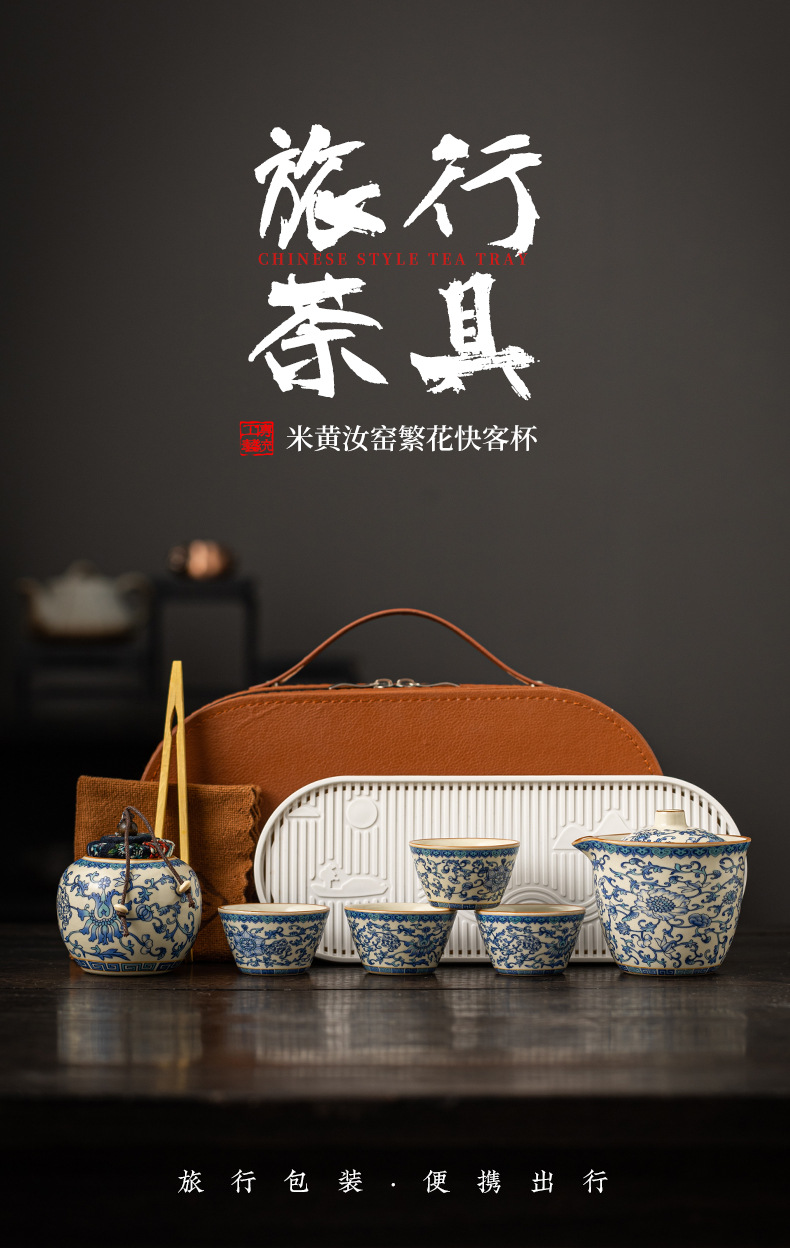 【汝窑缠枝莲旅行茶具】陶瓷快客杯 便携式户外旅行露营高档礼品 国庆出游