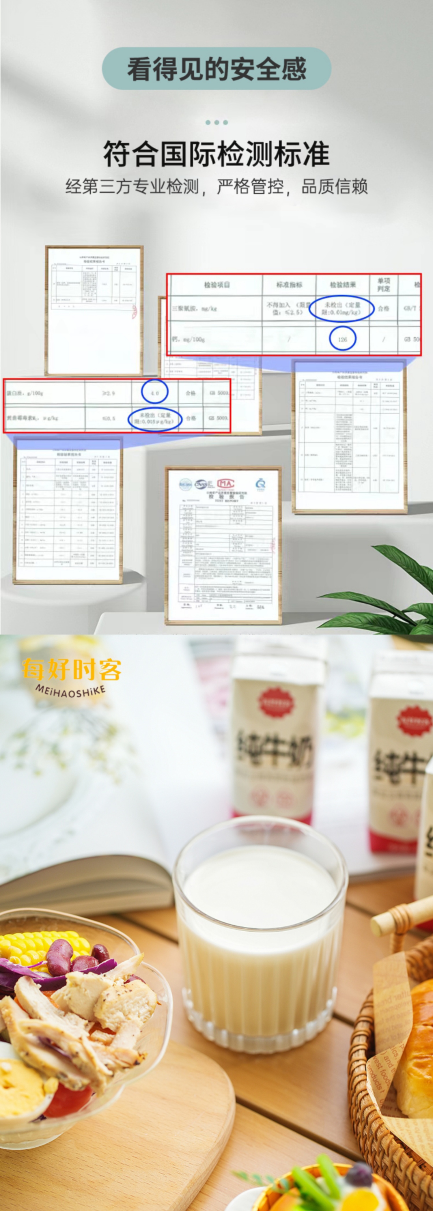 钙和蛋白质含量,是可以从包装上看到的。