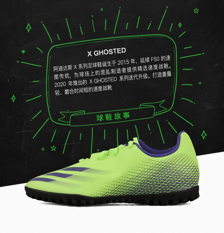 ADIDAS阿迪达斯 X GHOSTED.4 TF碎钉足球鞋EG8238