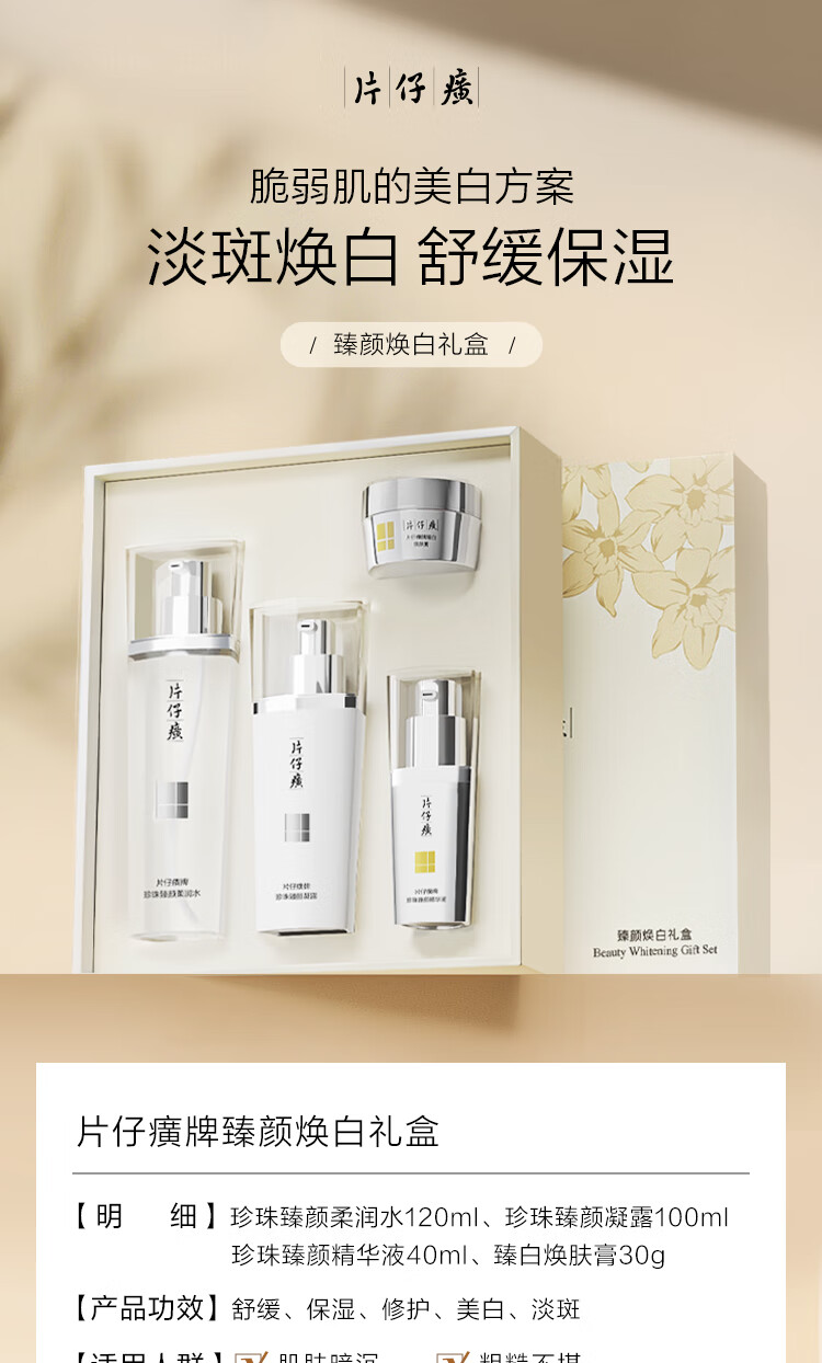 片仔癀臻颜焕白礼盒4件套 美白淡斑补水保湿护肤品(水凝露精华膏)