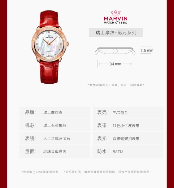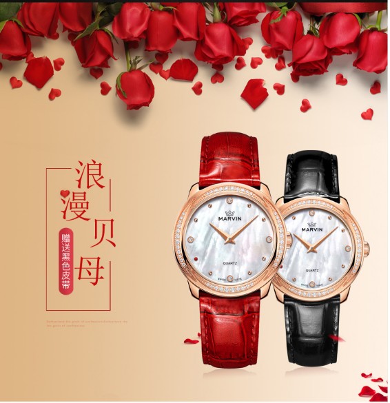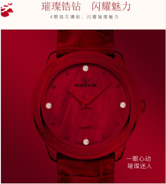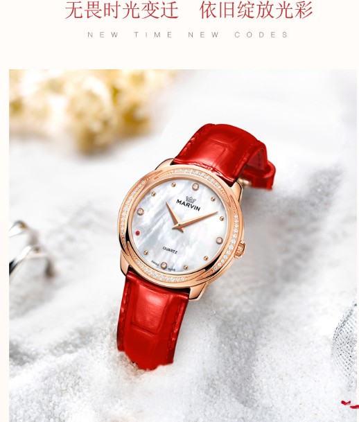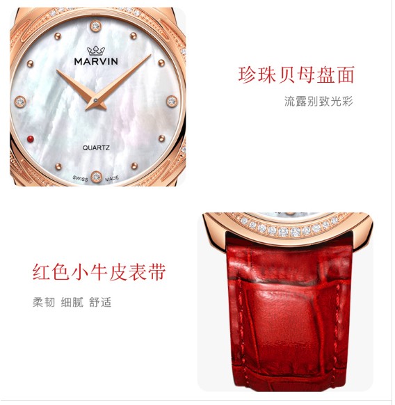 摩纹(Marvin)瑞士手表纪元系列贝母盘典雅石英女表【赠黑色蝴蝶扣表带】M029.57.74.96