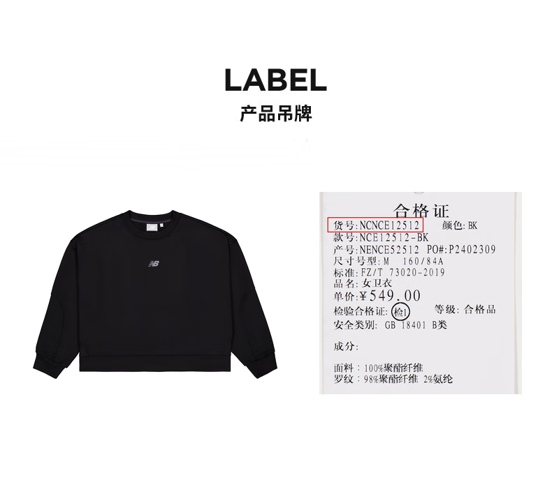 NEW BALANCE/NB CrewSweater Shirt 女款经典简约运动卫衣连帽外套