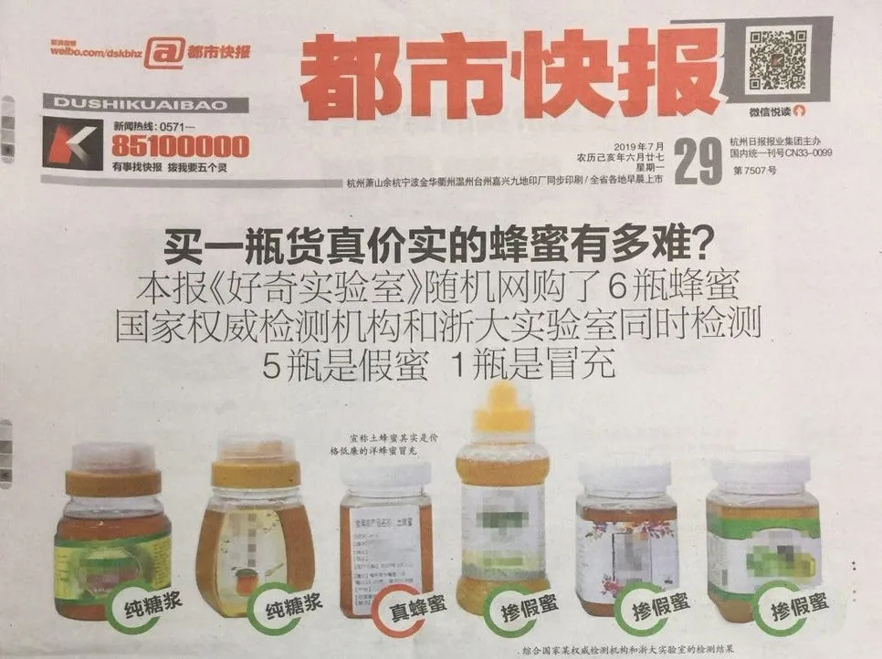 现在的造假技术早就不掺白糖、蔗糖了,而是添加玉米糖浆、果葡糖浆甚至明矾等勾兑冒充蜂蜜!各种科技蜜、勾兑蜜、水密、浓缩蜜,完全可以以假乱真还检测不出