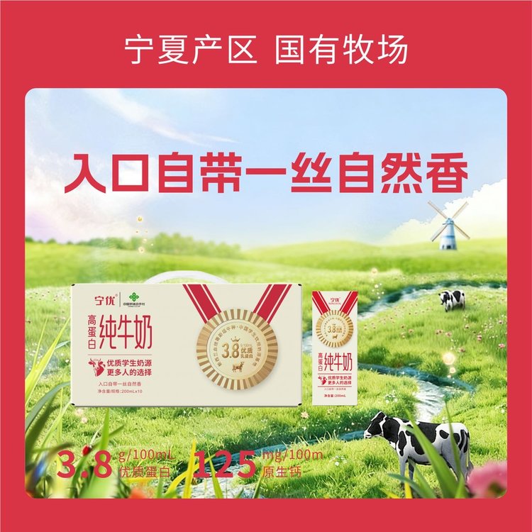 宁优3.8优质乳蛋白纯牛奶 宁夏产区 入口自带一丝自然香 商品缩略图0