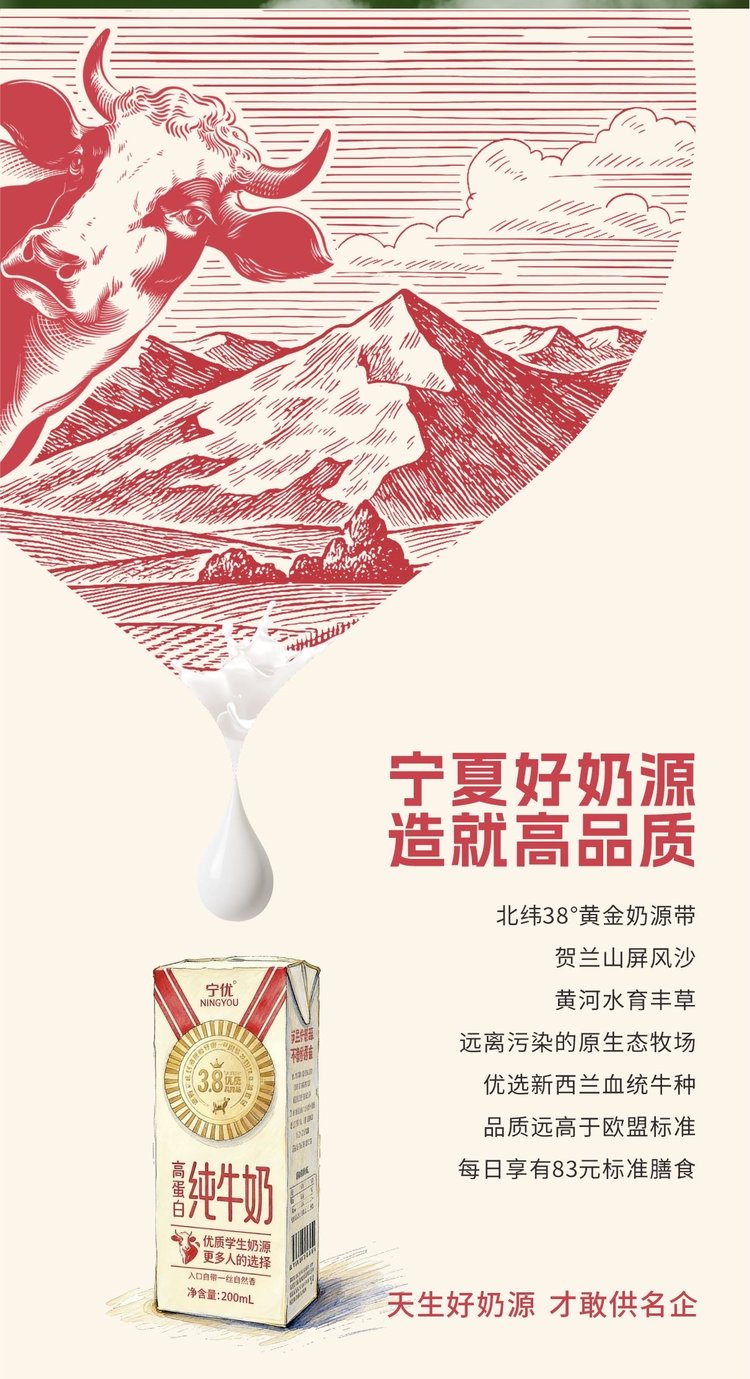 宁优3.8优质乳蛋白纯牛奶 宁夏产区 入口自带一丝自然香