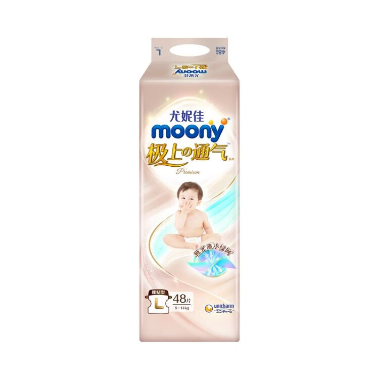 MOONY极上通气系列腰贴型婴儿纸尿裤L号48片(9-14kg使用)