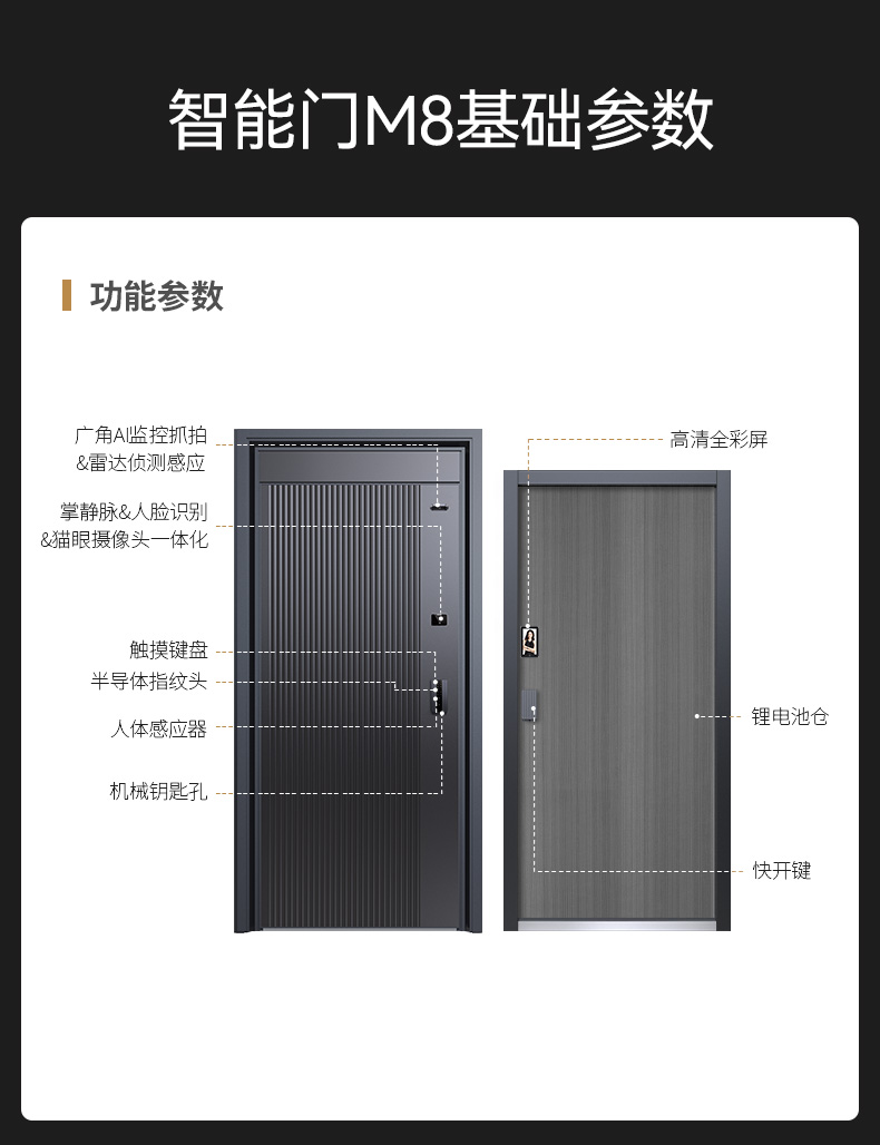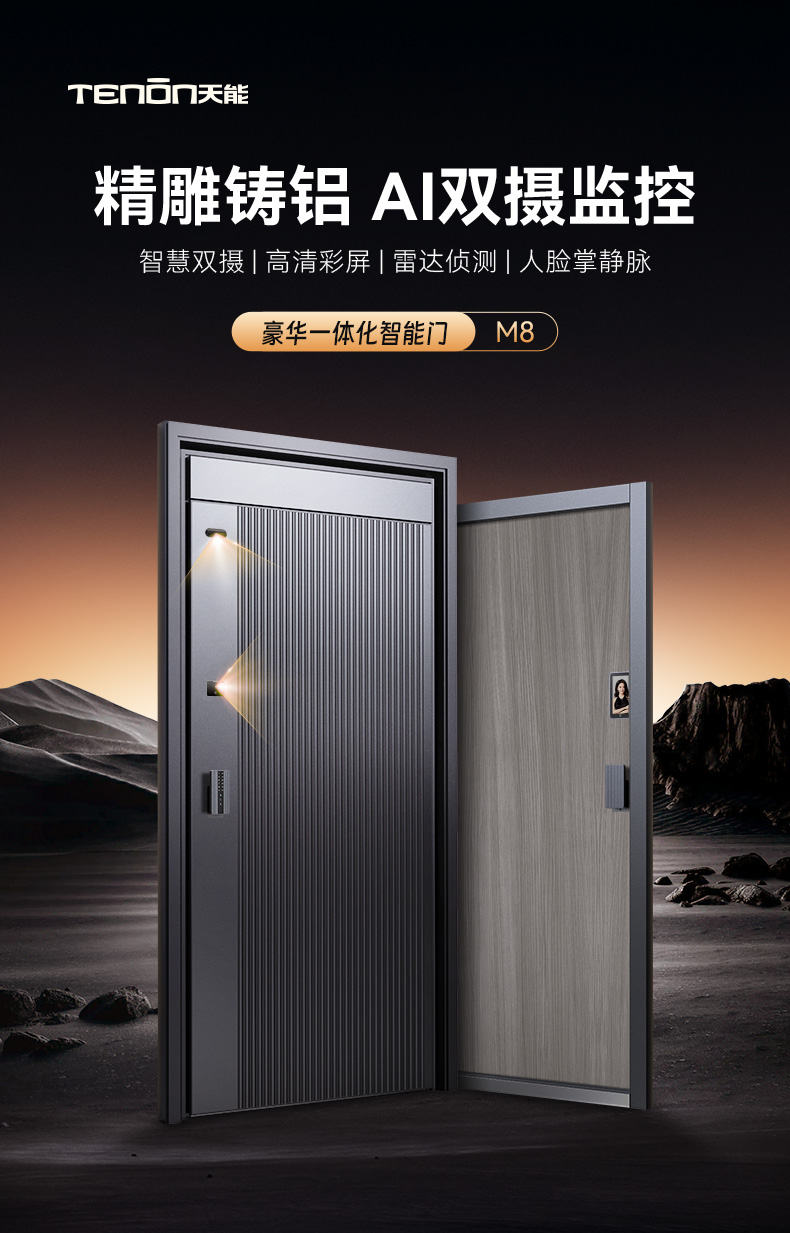 亚太天能精雕铸铝智能门AI双摄监控防盗入户门家用进户门子母大门M8