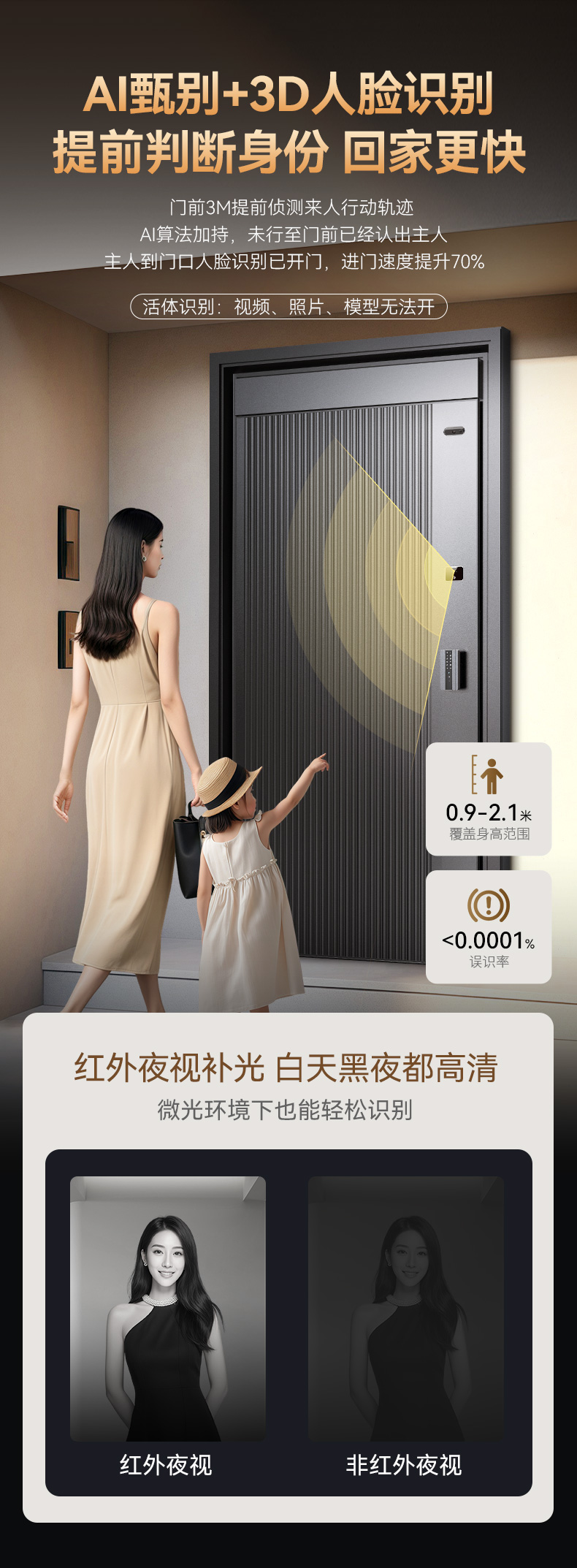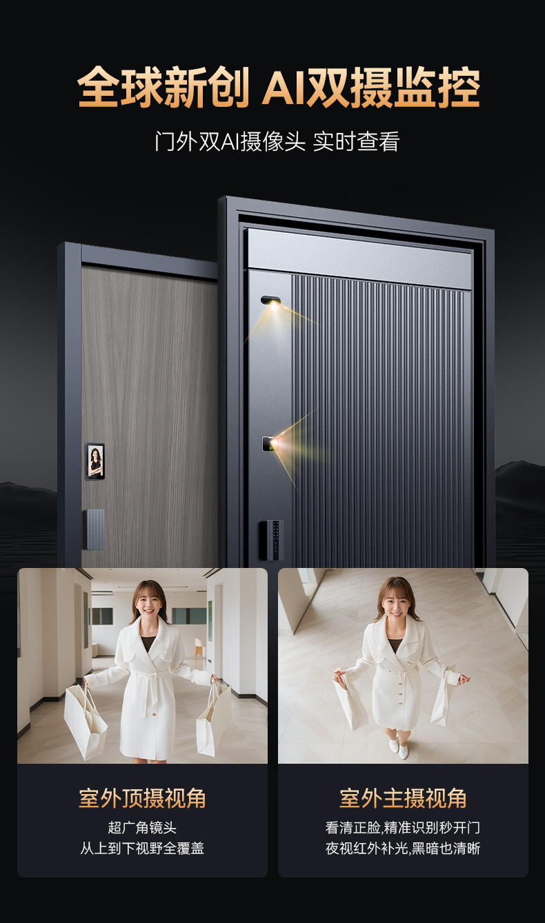 亚太天能双面铸铝智能门H9一体化全自动AI双摄监控防盗入户门家用进户门大门