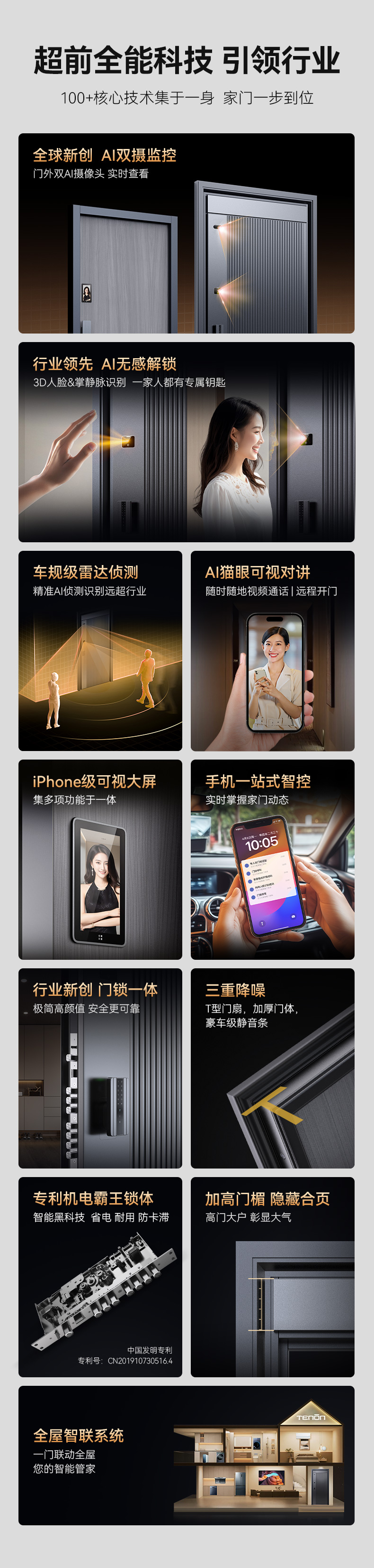 亚太天能智能门H3pro一体化全自动AI三摄监控入户门家用防盗进户门大门