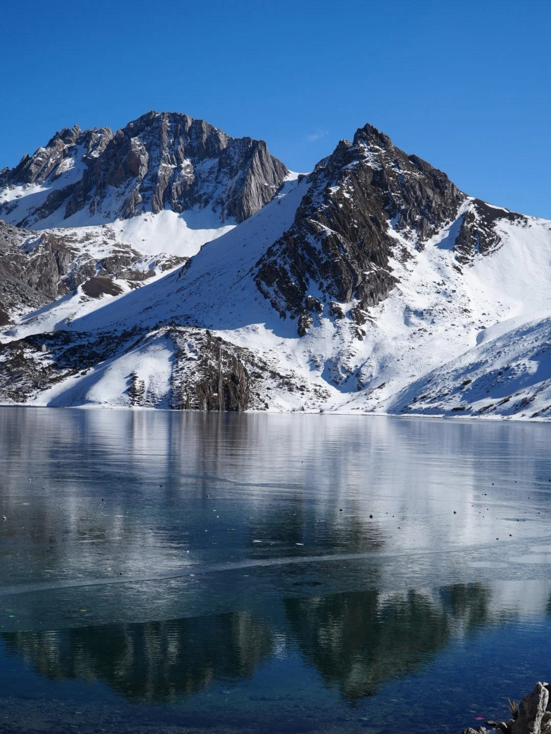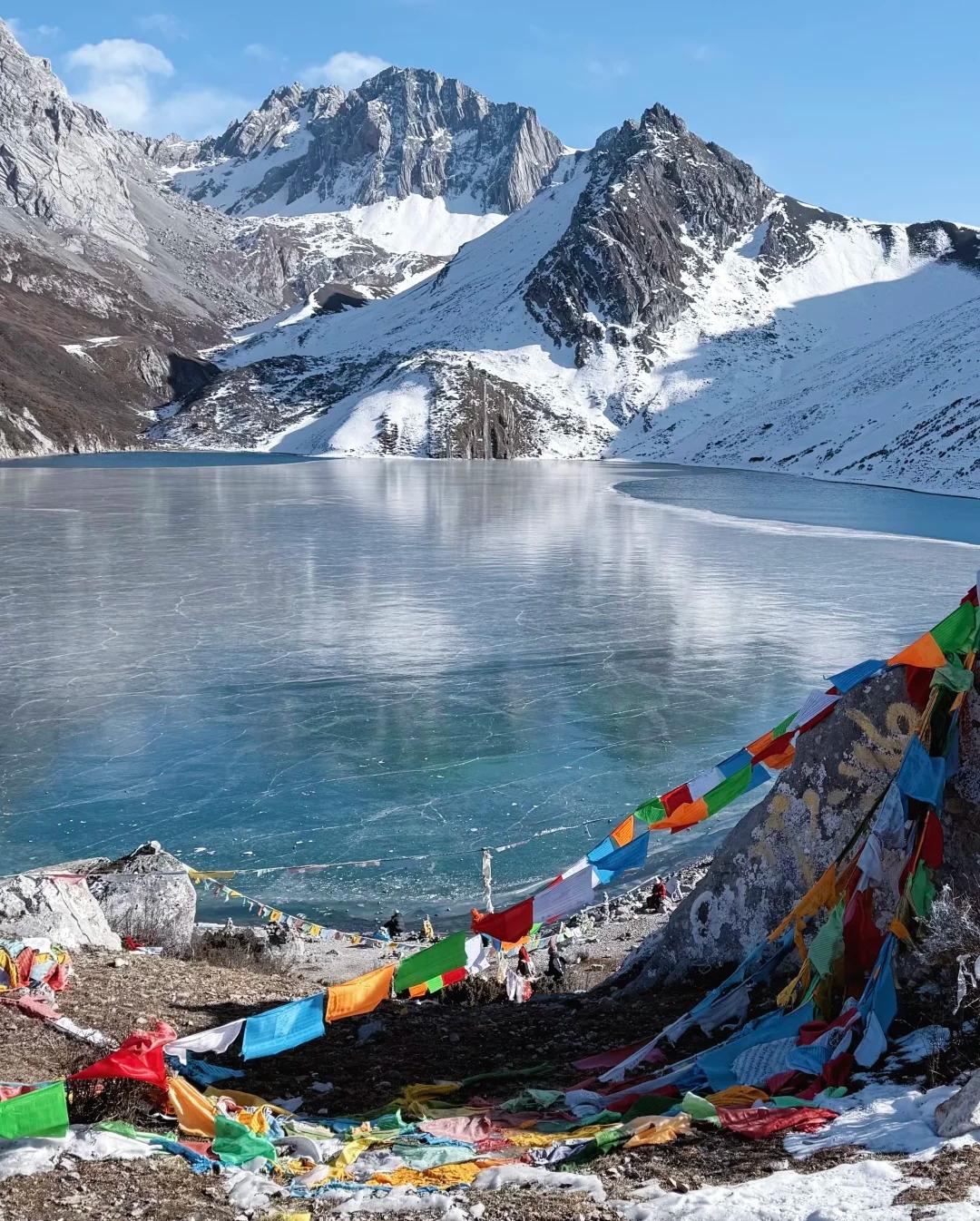 当地流传着关于圣湖的敬畏之说,告诫访客不可大声喧哗、不可触碰湖水,以免惊动山神,这份虔诚让冰湖始终保持着原始纯粹的姿态。