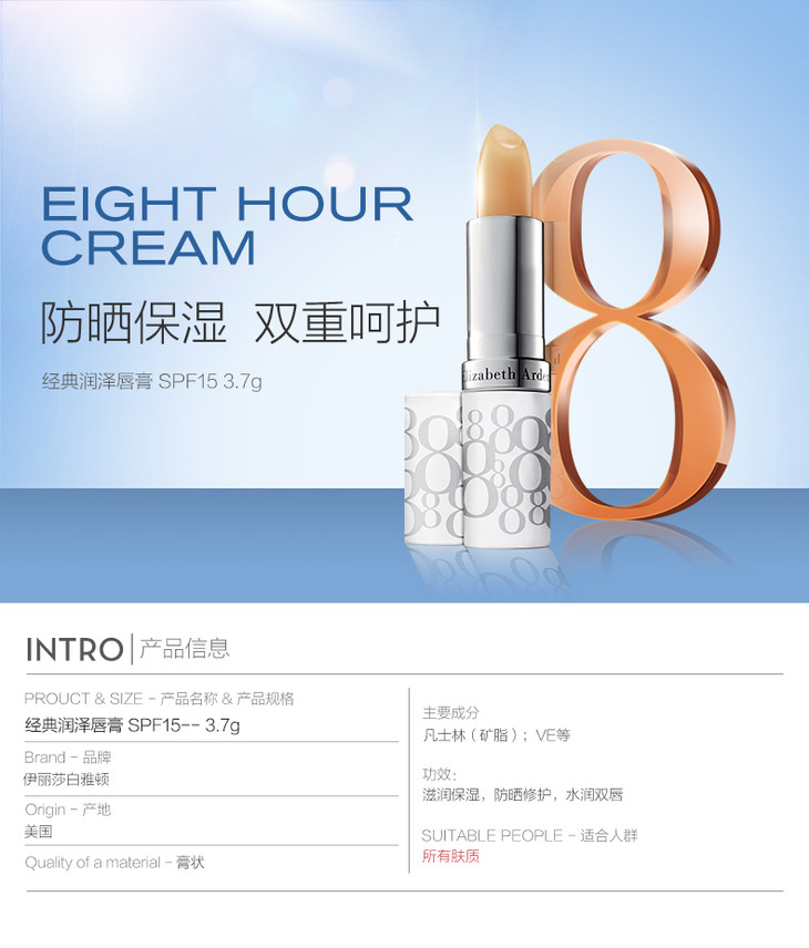 伊丽莎白雅顿 8小时经典润泽唇膏SPF15(3.7g)