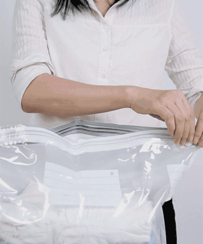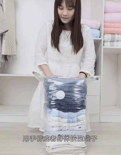 将需要收纳的东西叠好,放进压缩袋,