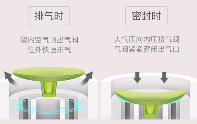 排气时袋内空气顶出气阀,快速排气,