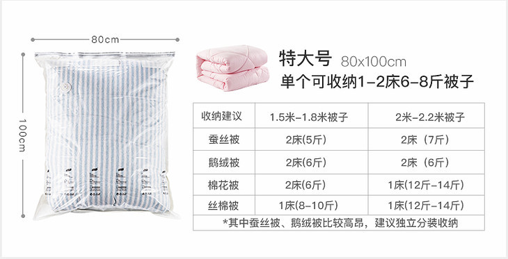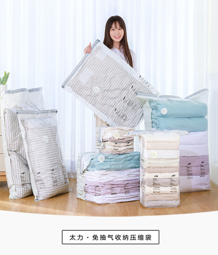 太力·免抽气收纳压缩袋 , 一按一压,轻松腾出一大半空间