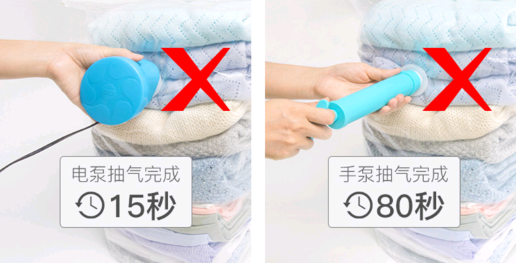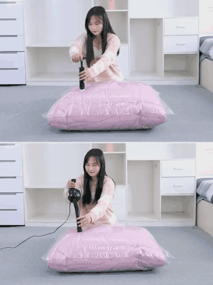 一般的真空压缩袋都依靠配套的泵来压缩,