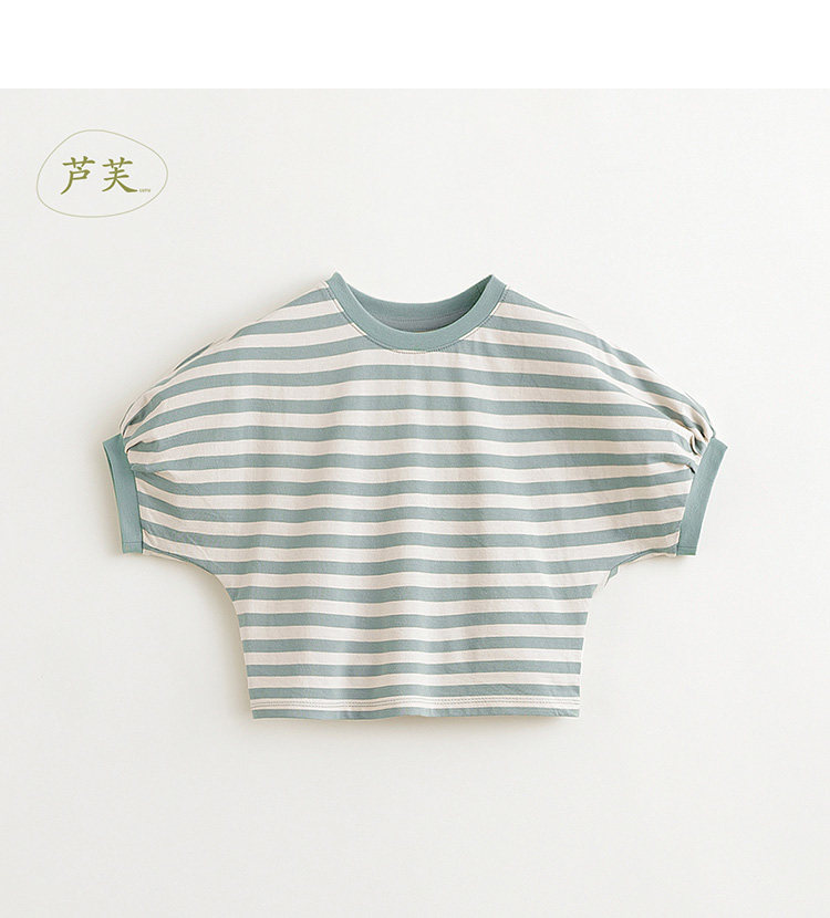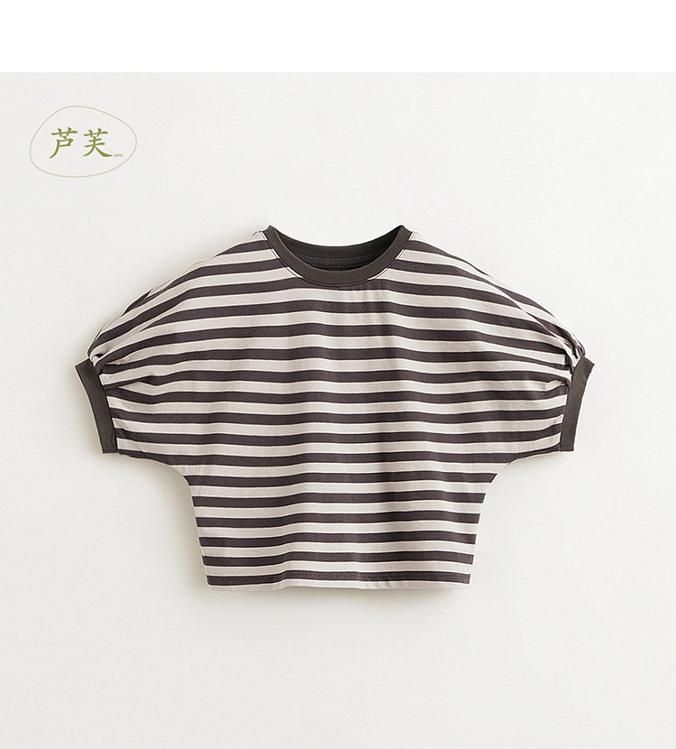 【马克珍妮 芦芙】春装新款 女童纯棉灯笼袖条纹T恤 240188