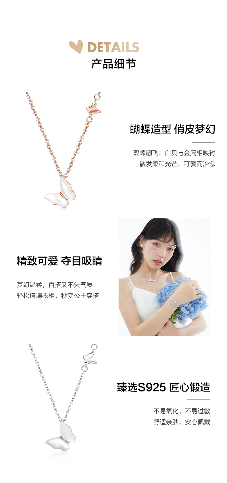 KADER卡蒂罗 蝶影仙踪项链 S925梦幻俏皮蝴蝶展翅飞舞造型设计锁骨链 甜美可爱精致优雅配饰 闺蜜同款女生款