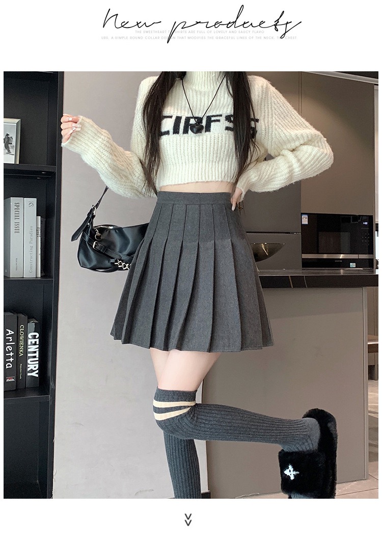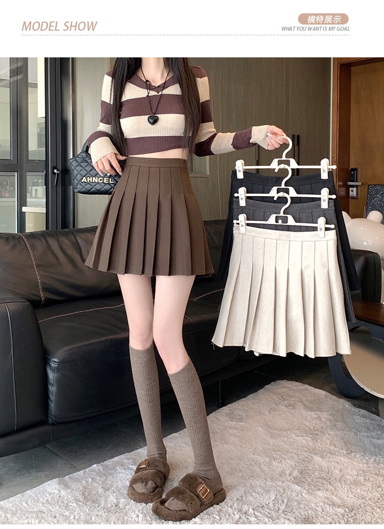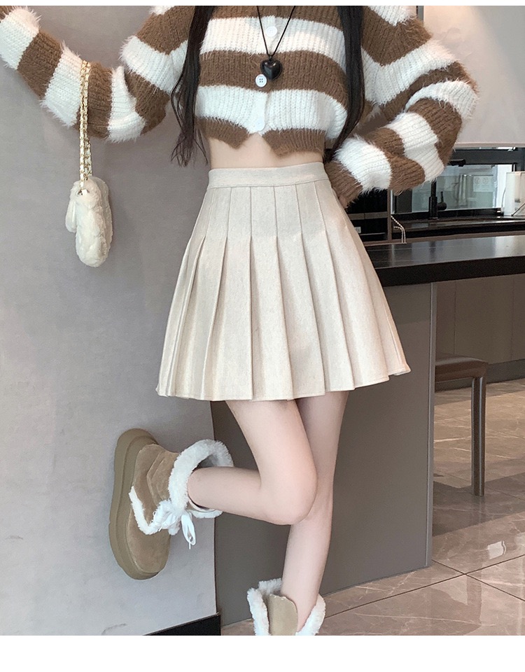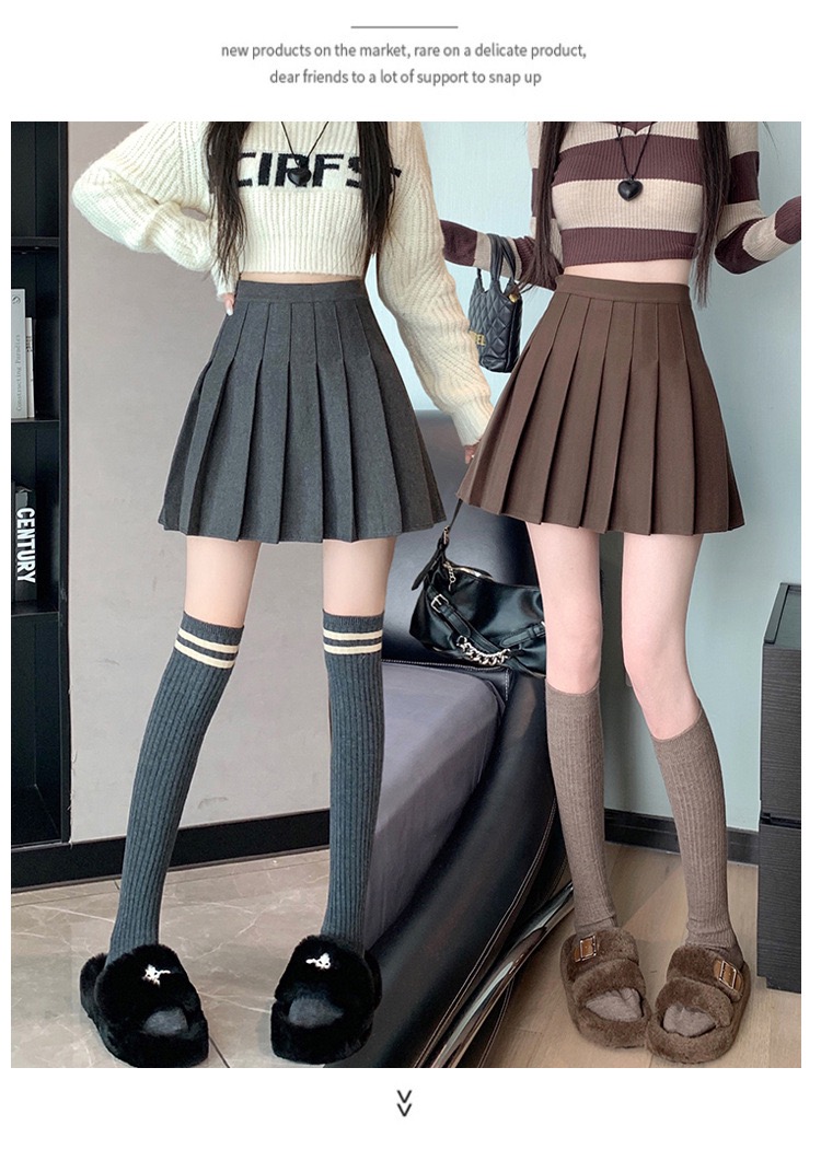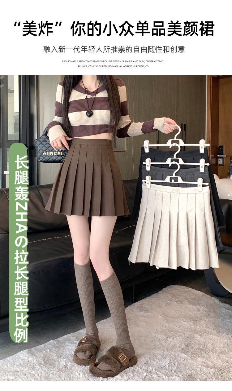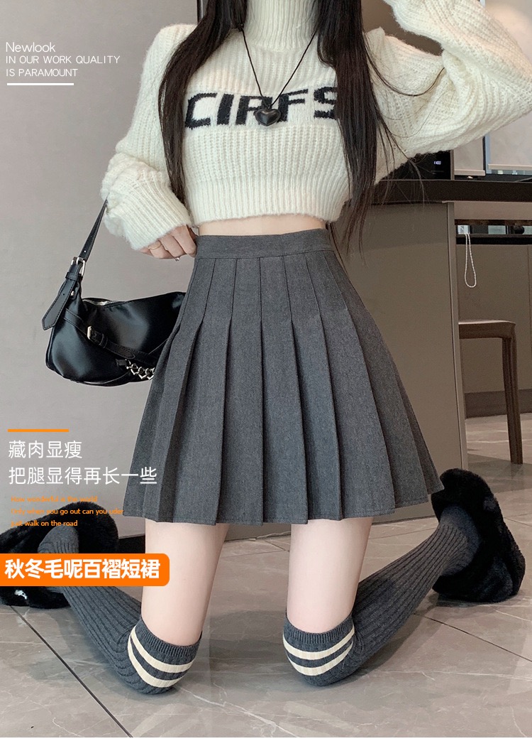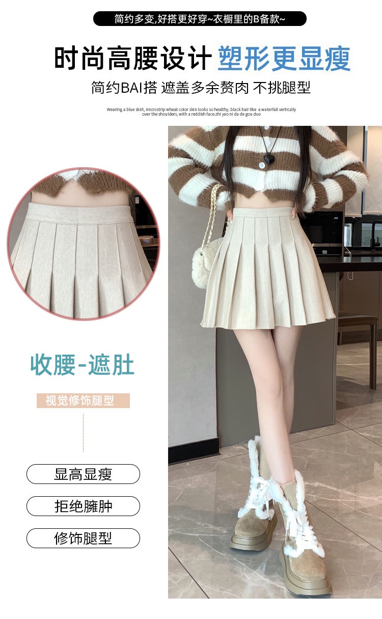 【YW】无忧购秋冬韩系学院风加厚毛呢高腰显瘦半身百褶短裙521(截单后7天发货)25年清仓捡漏