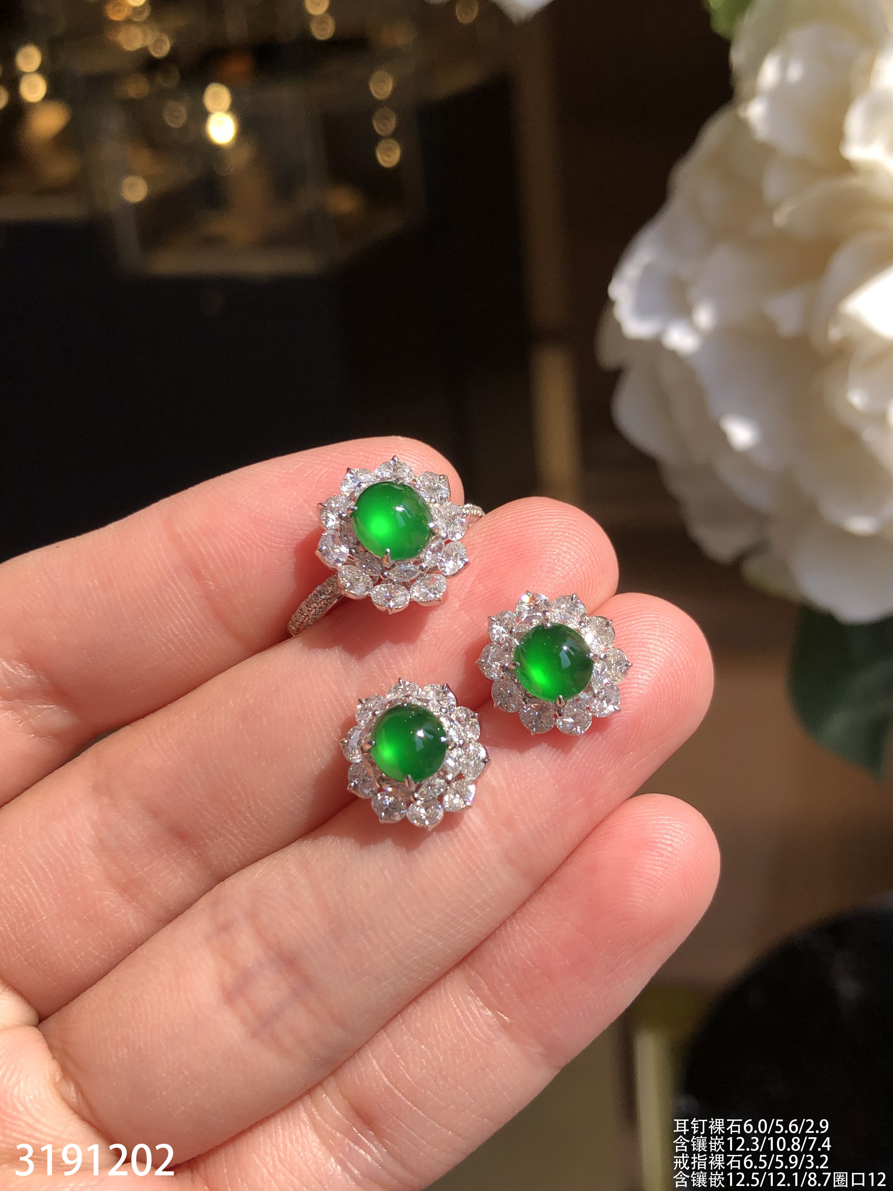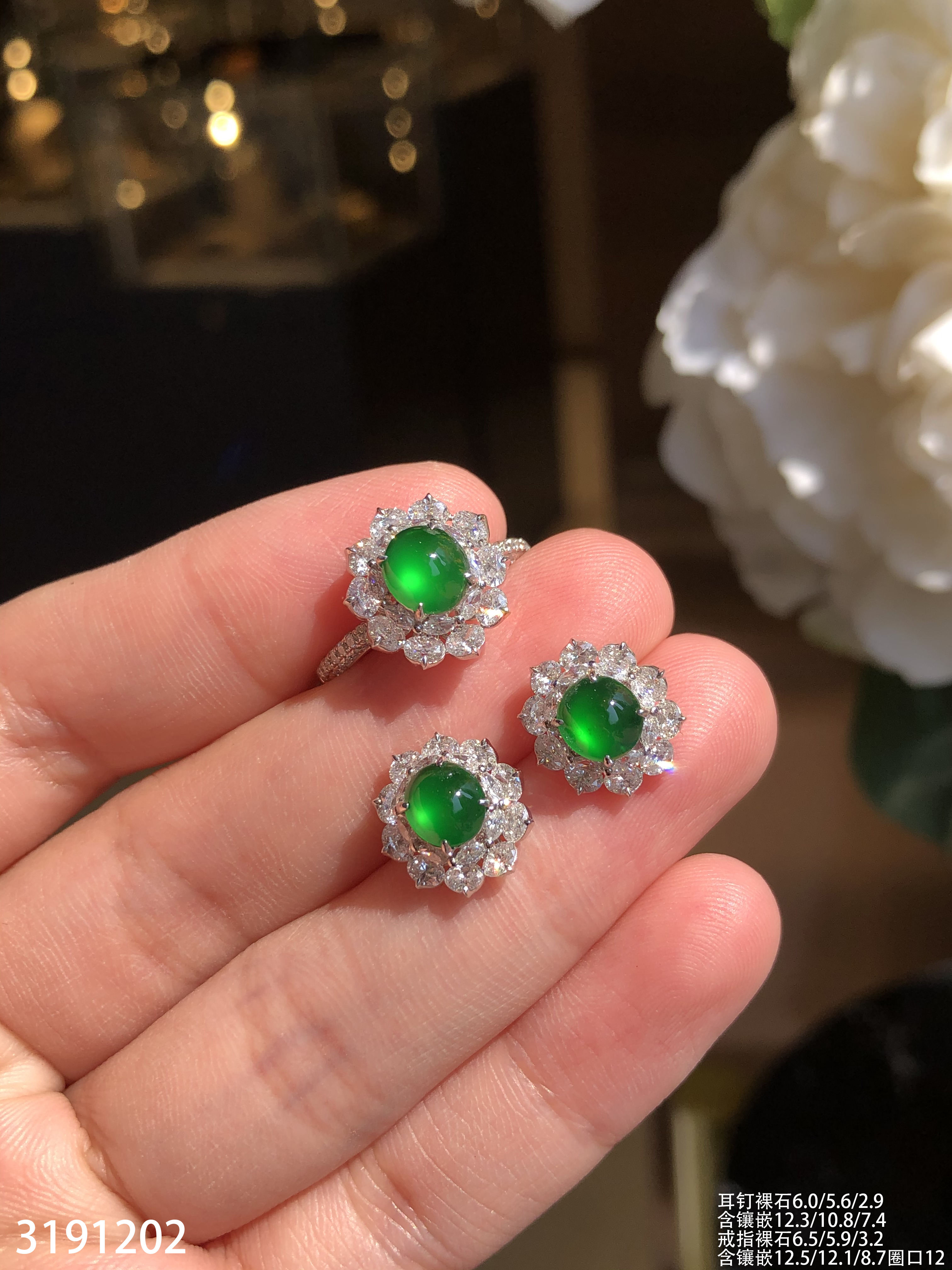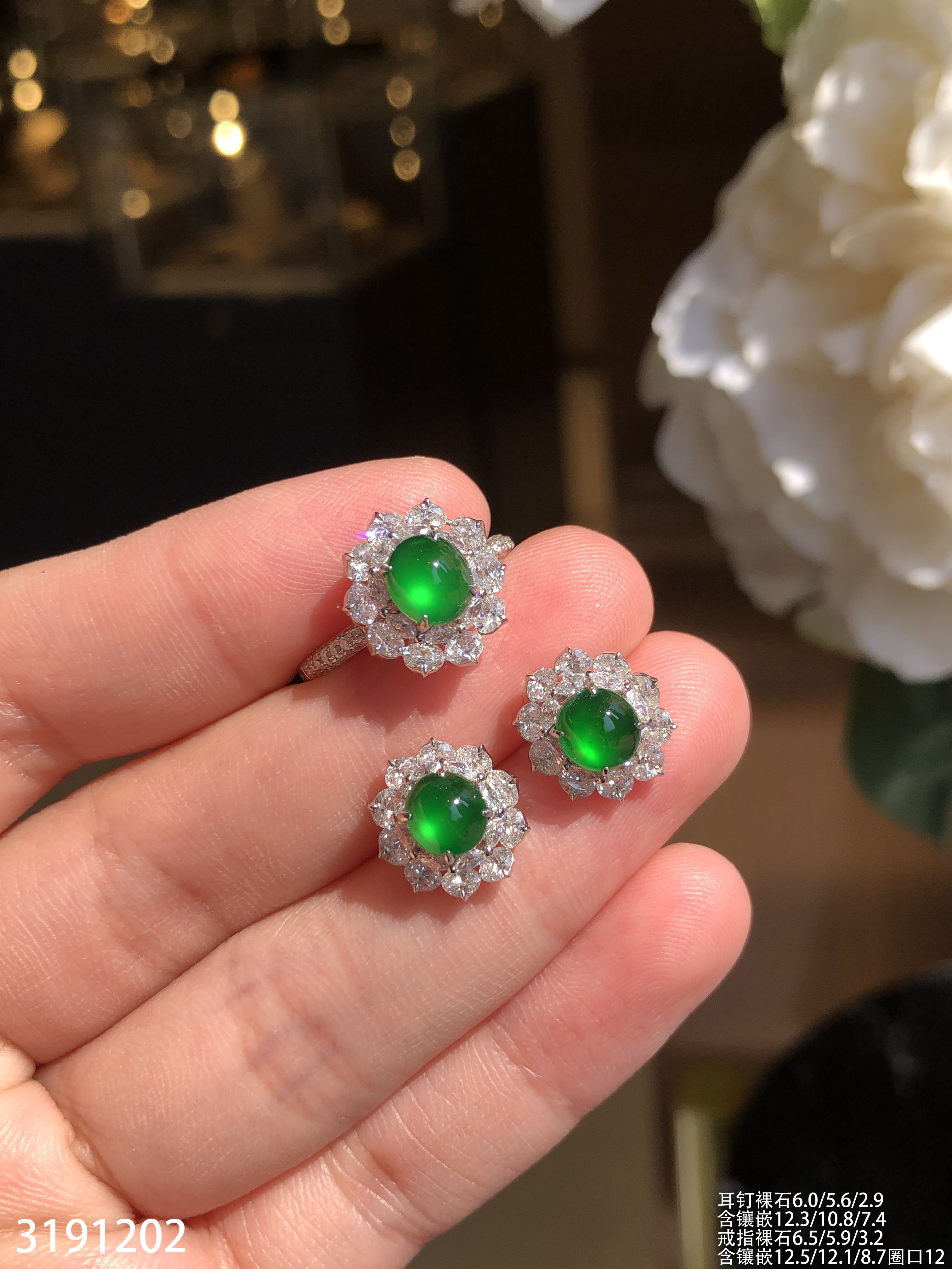 3191202,老坑玻璃帝王绿蛋面套装。具体价格微信咨询
