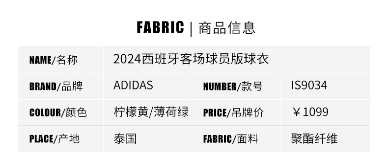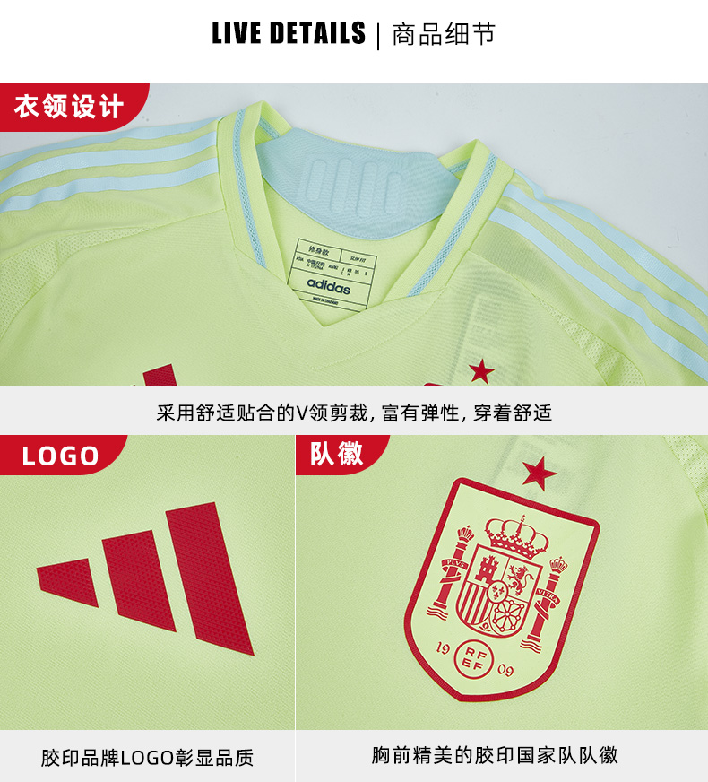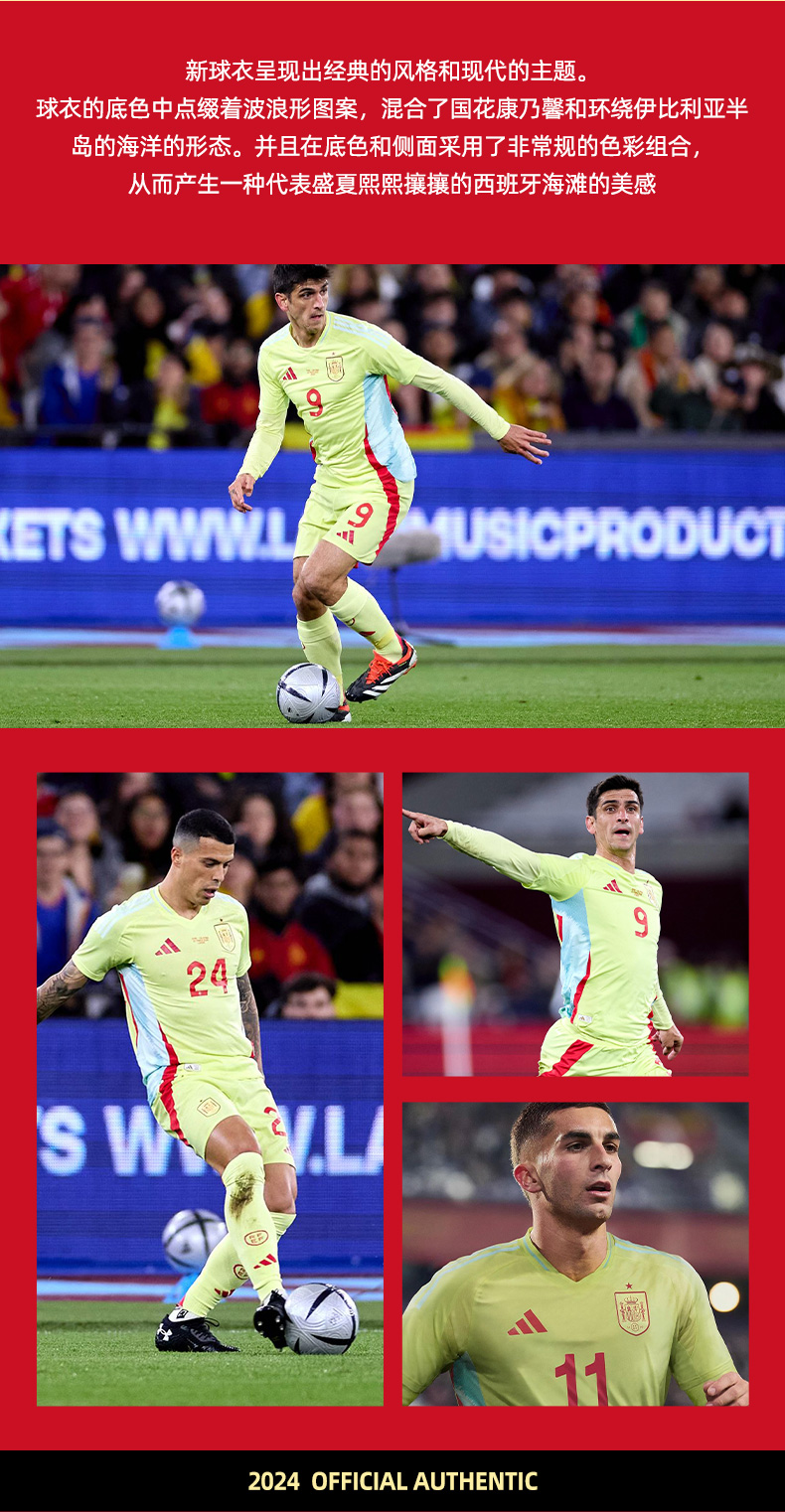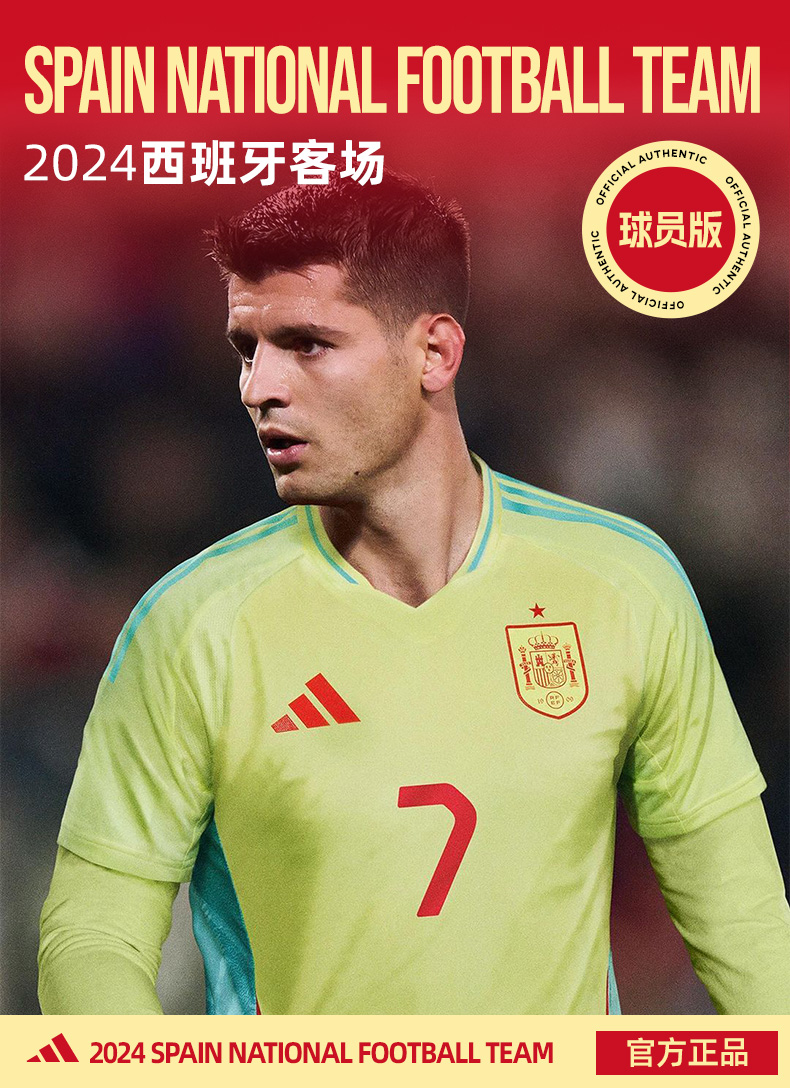 SFS阿迪达斯Adidas 2024欧洲杯西班牙客场球员版球衣足球服IS9034