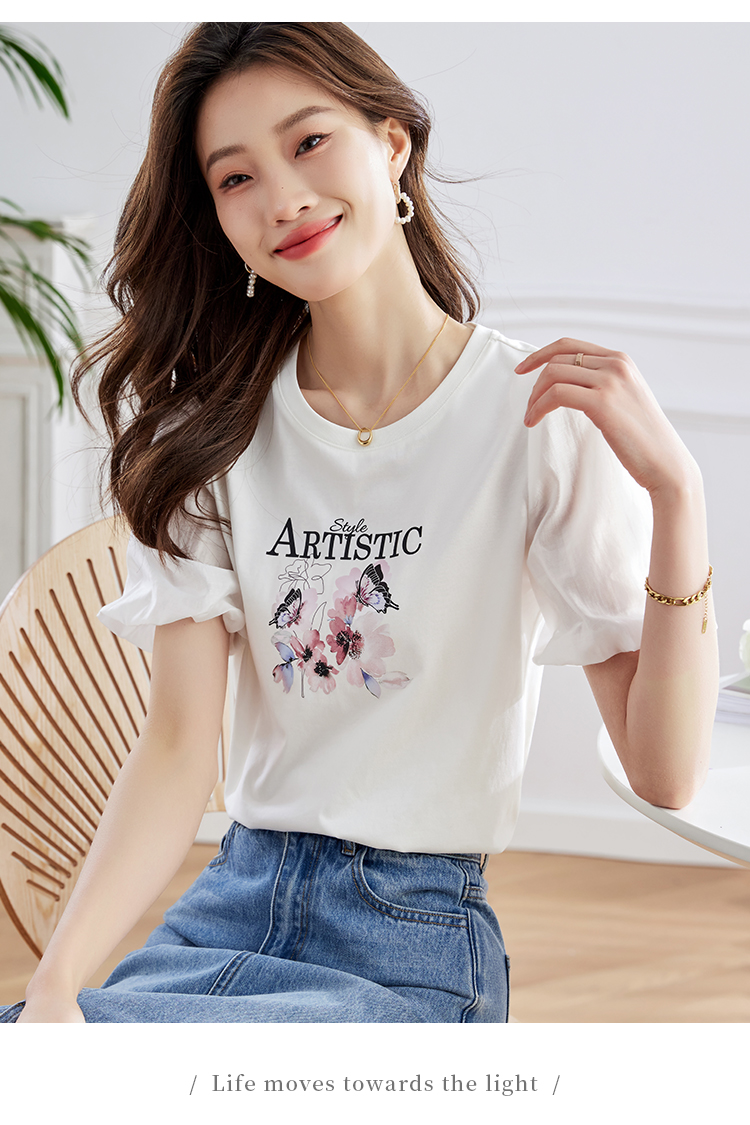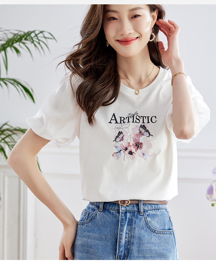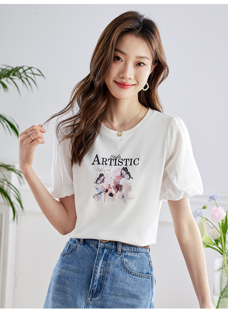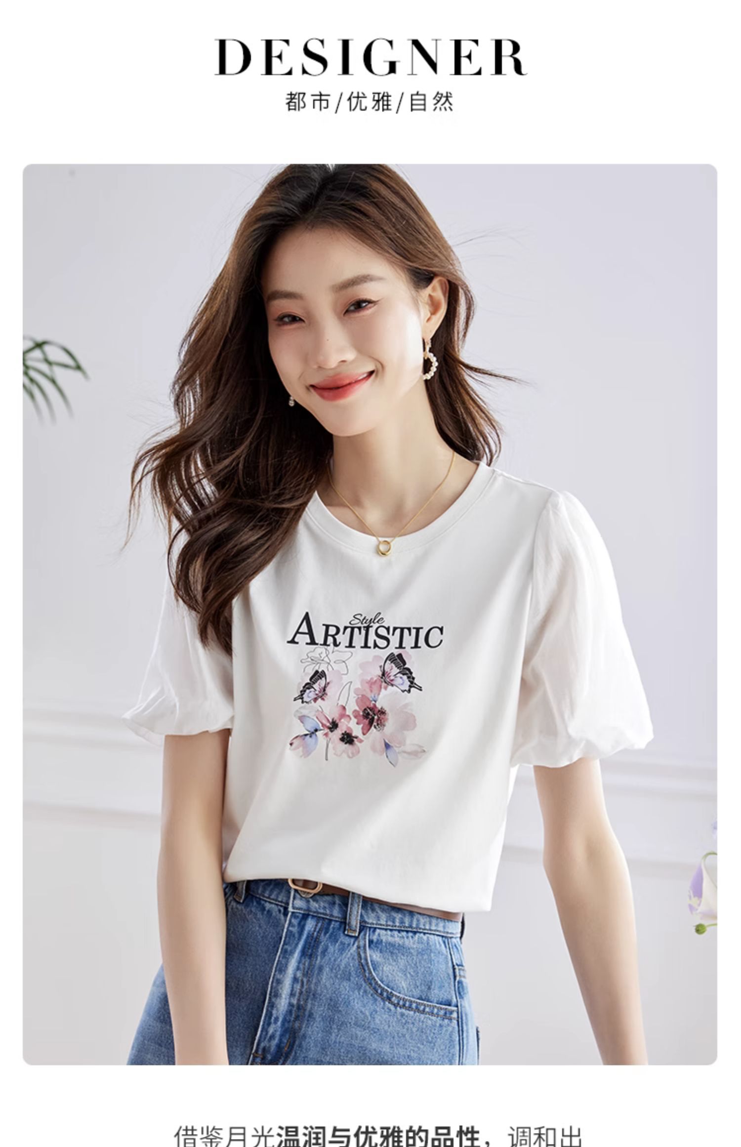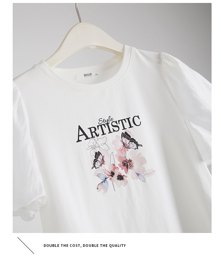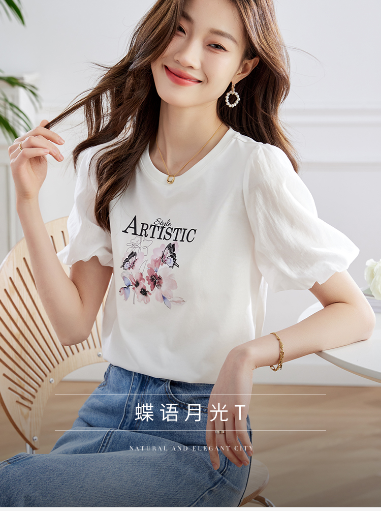 【69元福袋不支持退换】熙世界蝴蝶字母印花T恤女ins半袖独特别致泡泡袖上衣