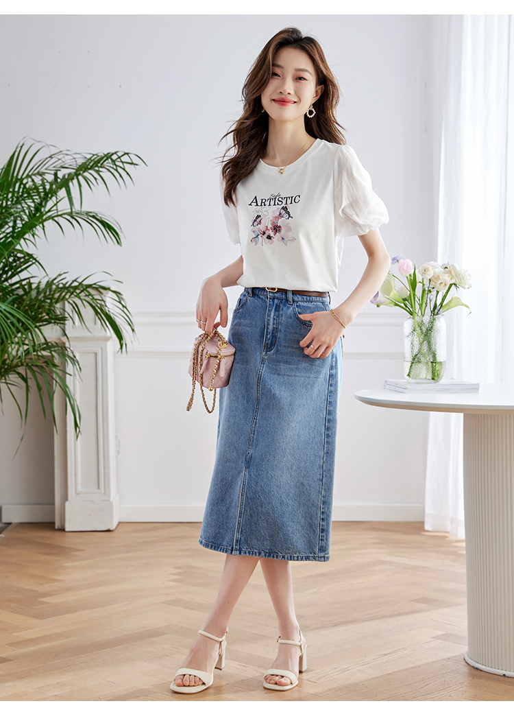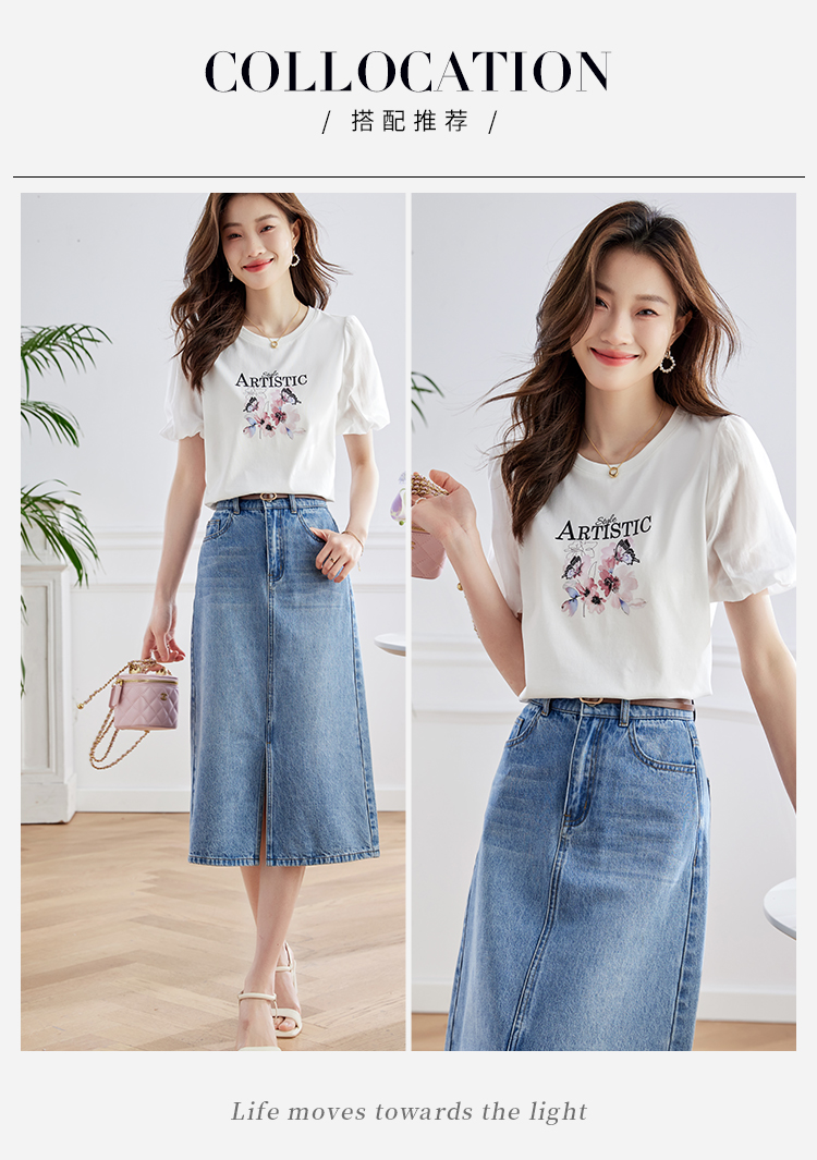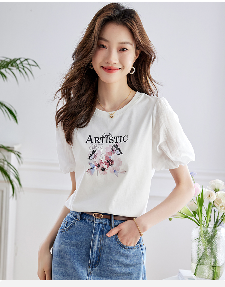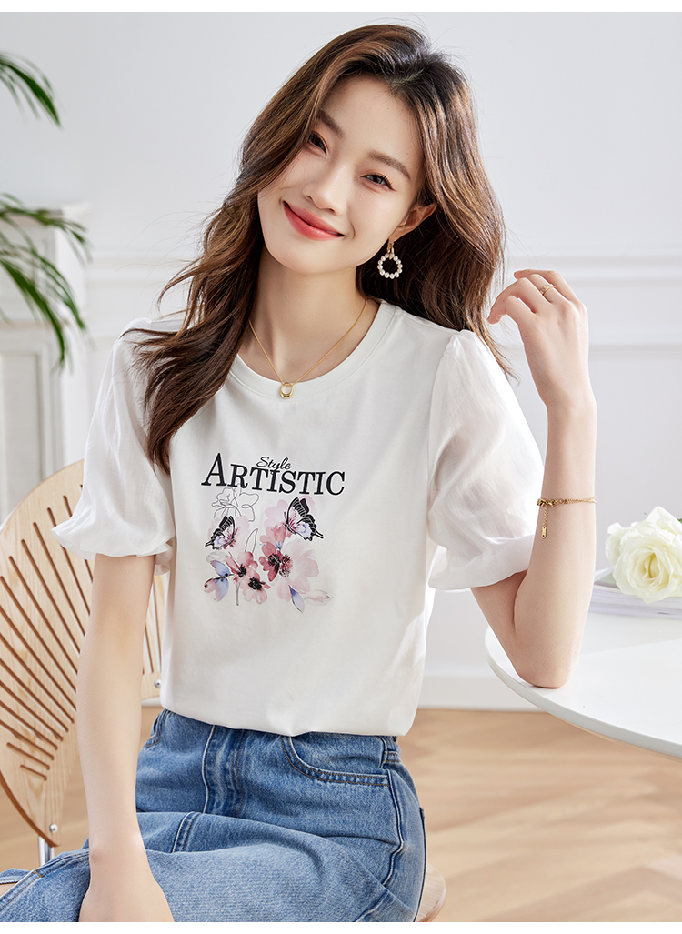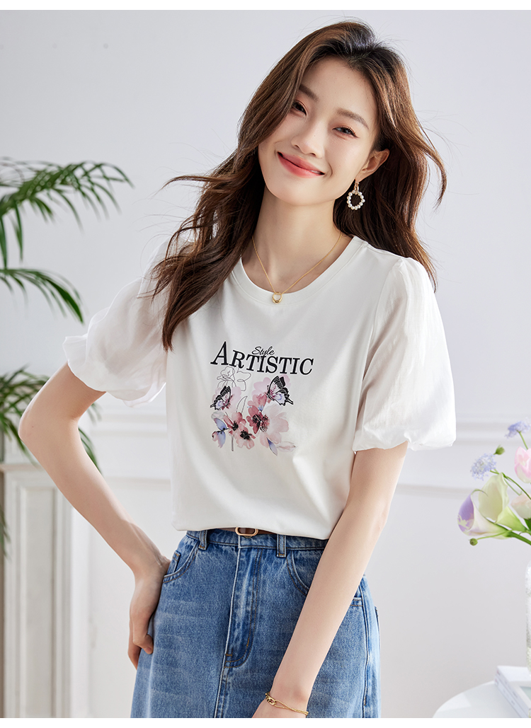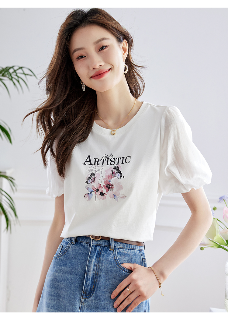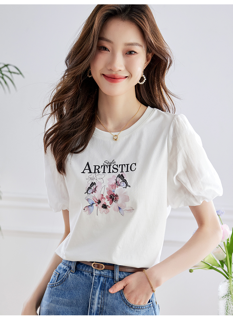 【69元福袋不支持退换】熙世界蝴蝶字母印花T恤女ins半袖独特别致泡泡袖上衣