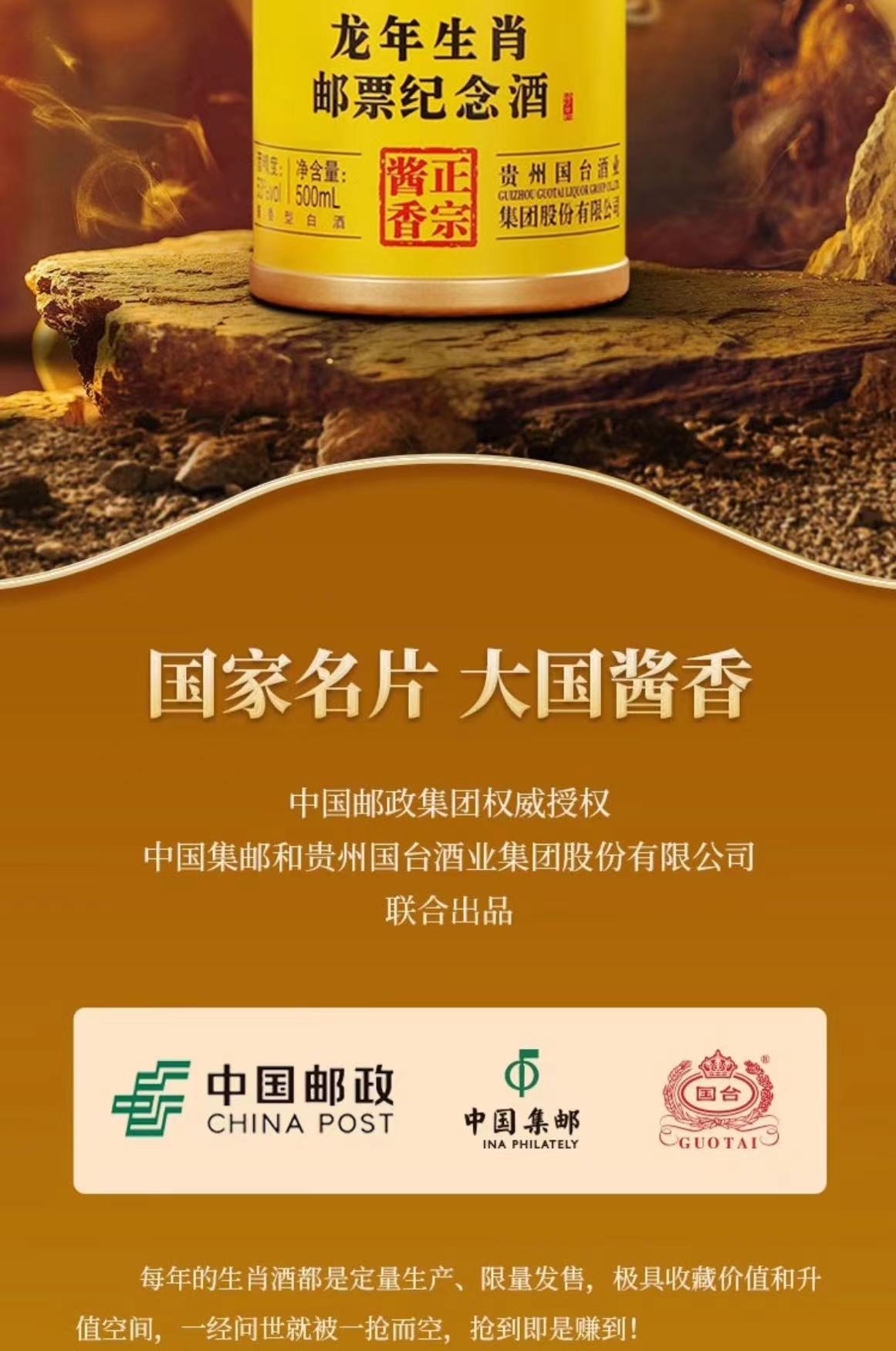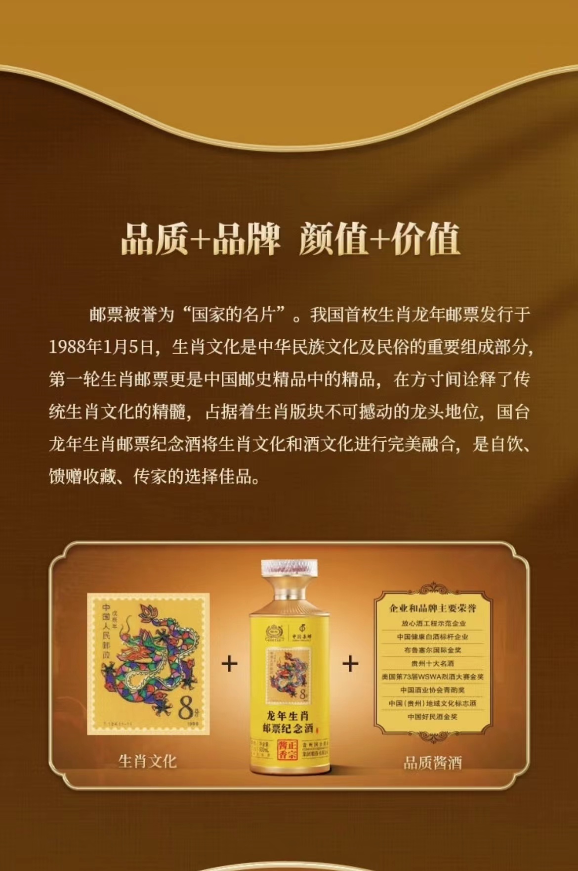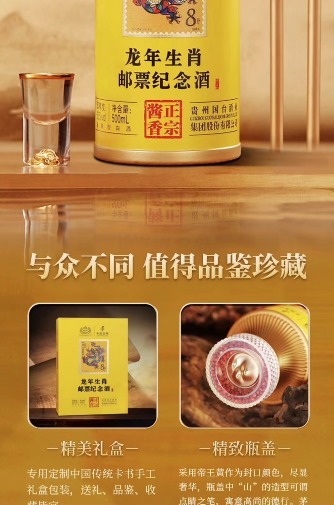 国台龙年生肖邮票纪念酒 53度酱香型白酒 礼盒装 53%vol(500ml)