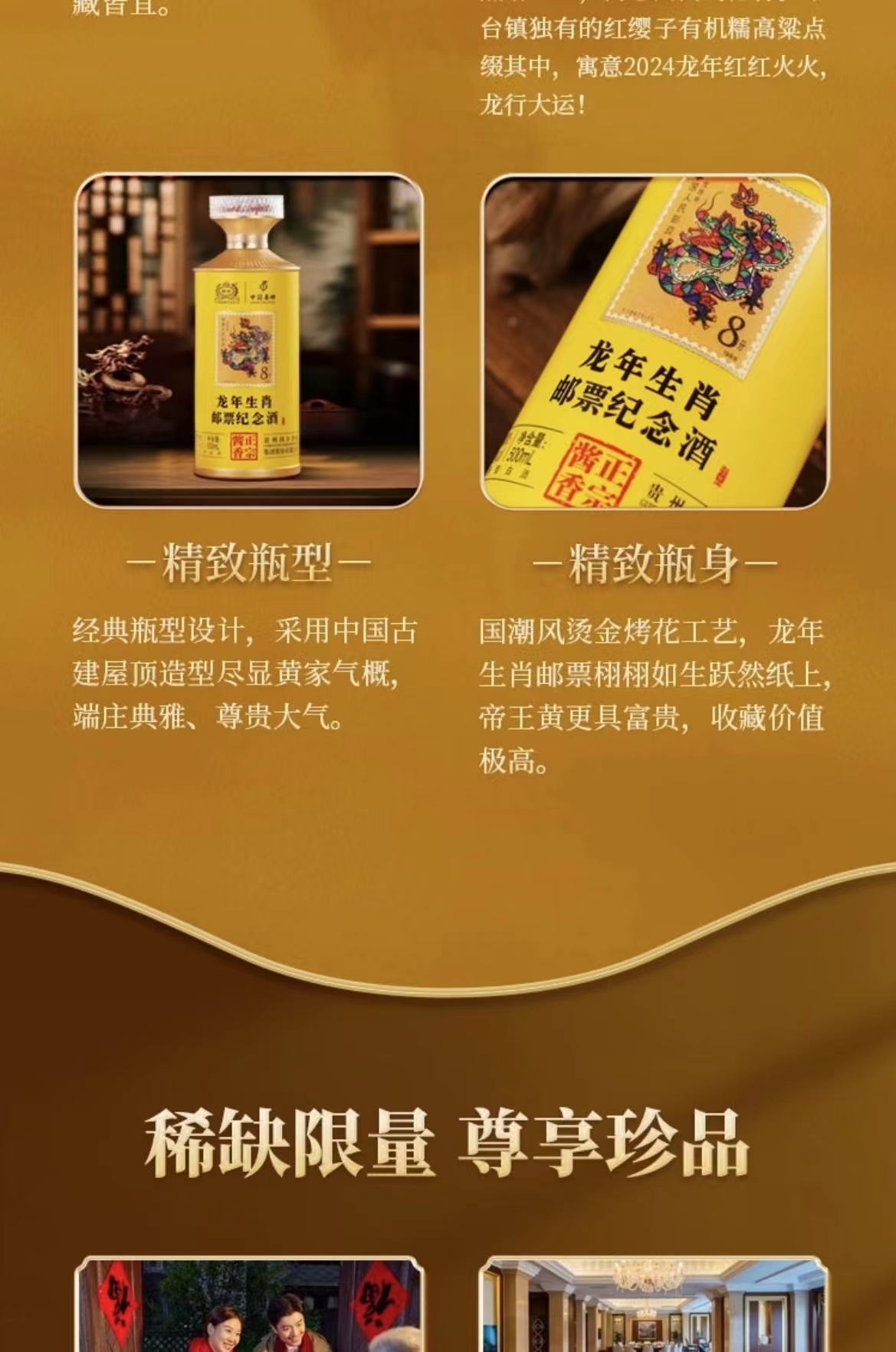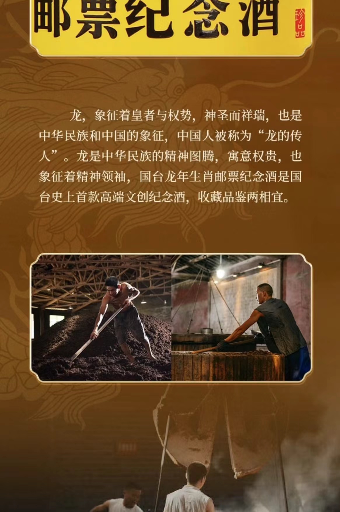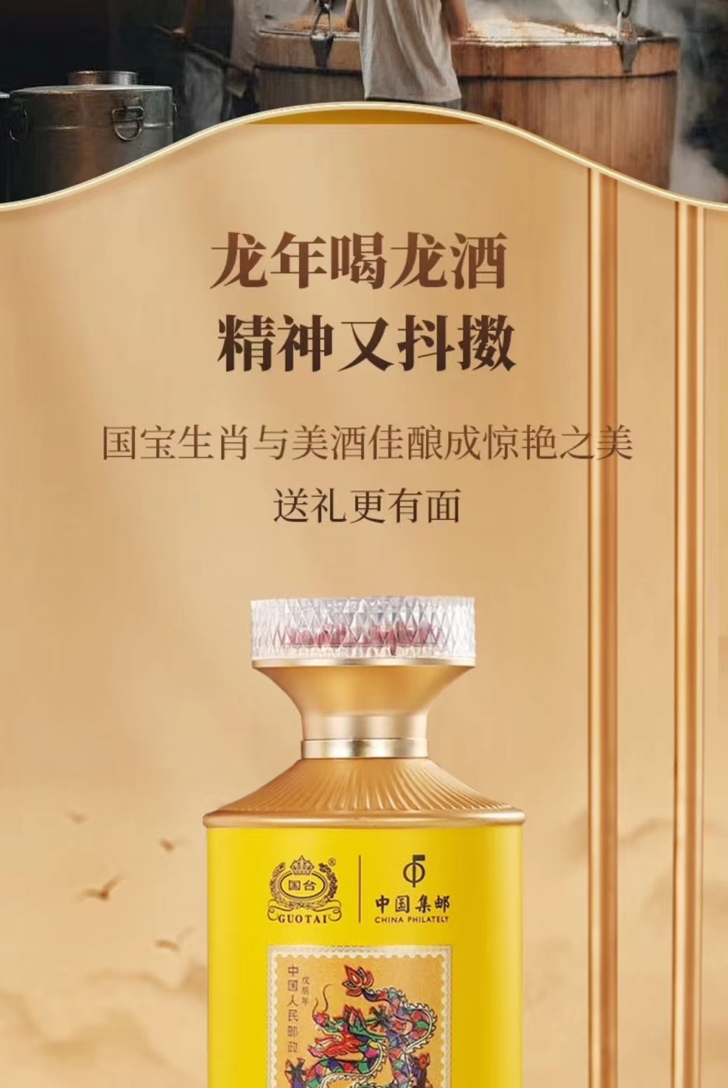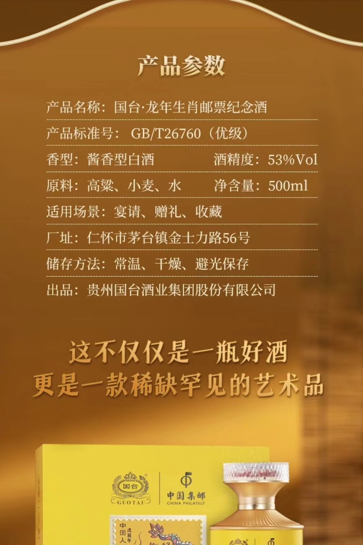 国台龙年生肖邮票纪念酒 53度酱香型白酒 礼盒装 53%vol(500ml)