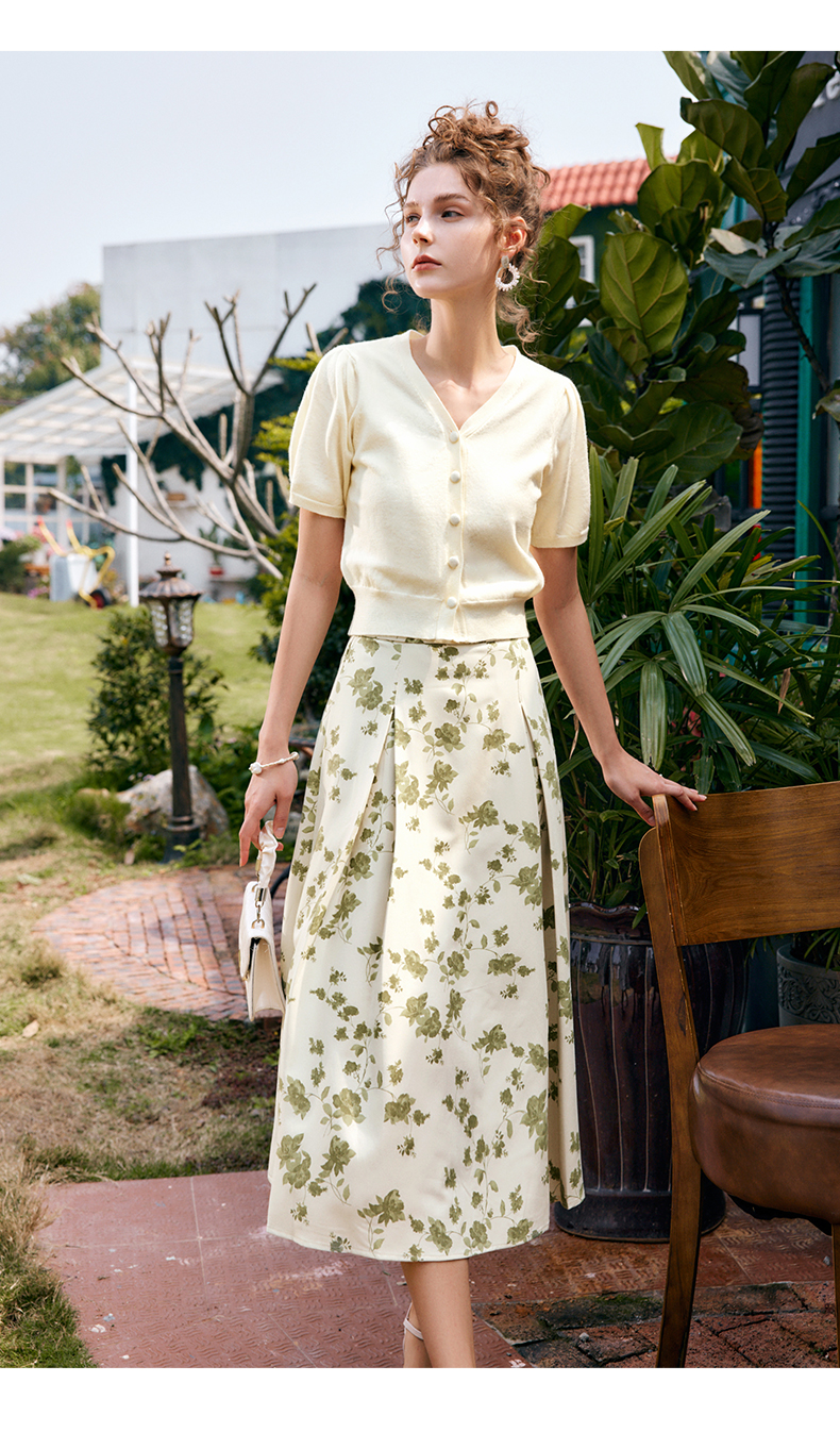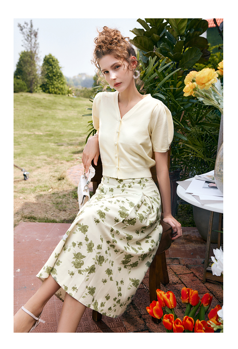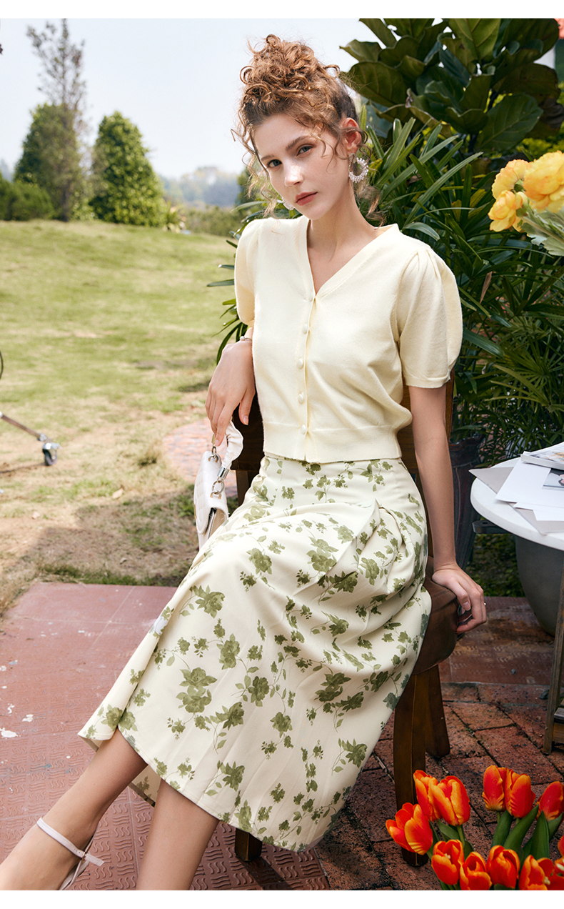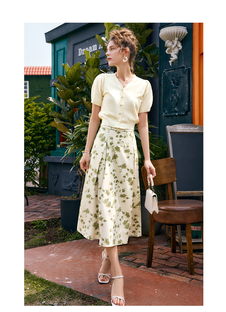 OLrain法式高级穿搭碎花半身裙女夏季2022新款高腰气质a字伞摆裙