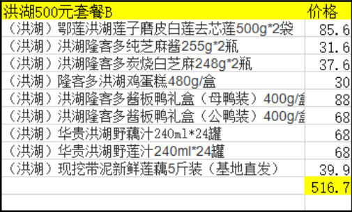 洪湖500元套餐B