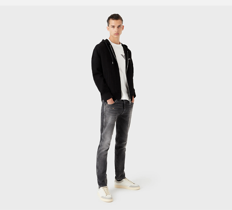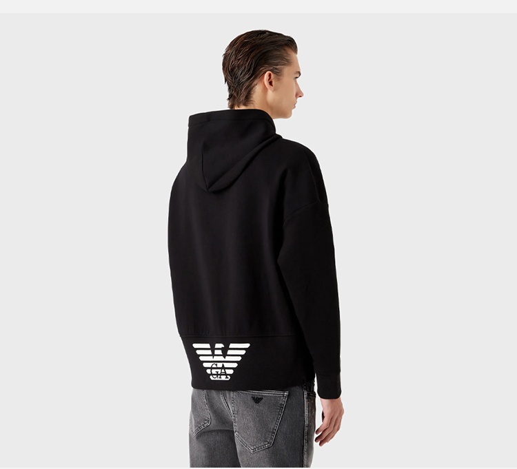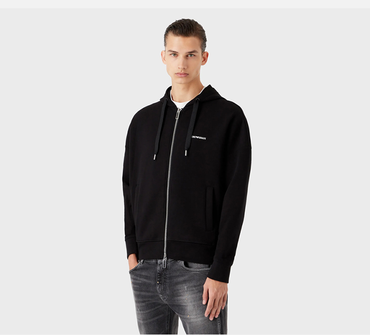 EMPORIO ARMANI 阿玛尼 男士棉质徽标印花拉链连帽卫衣 黑色 6L1MB4 1JHSZ 0999