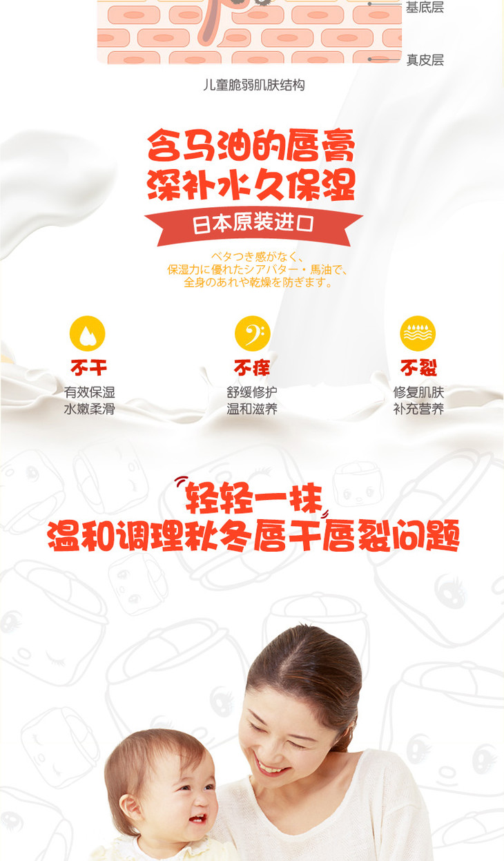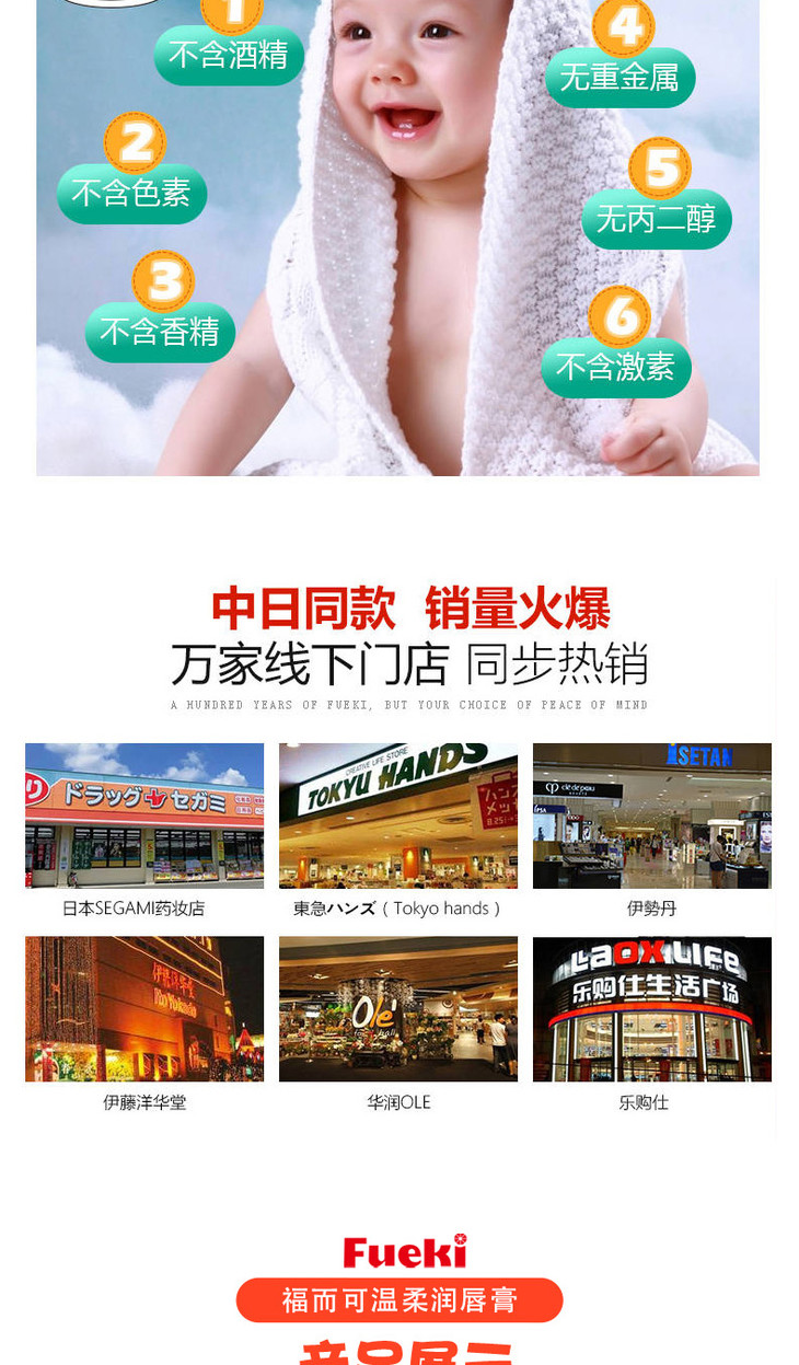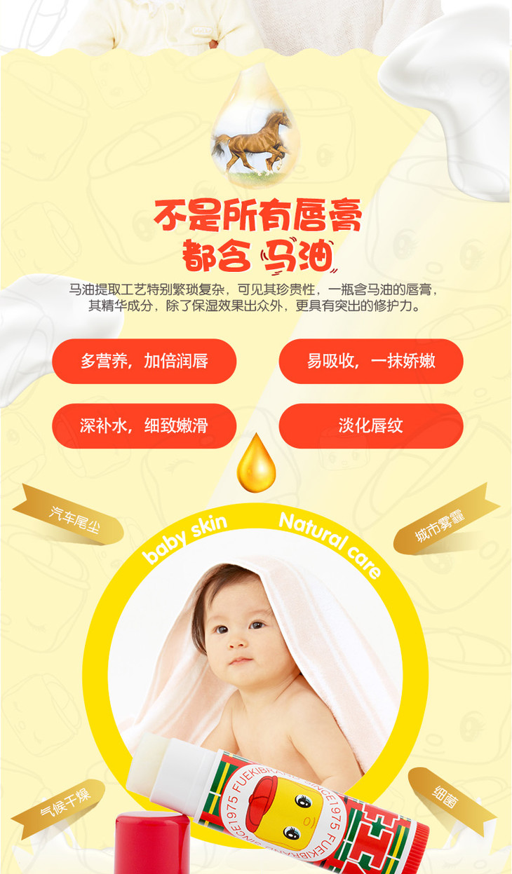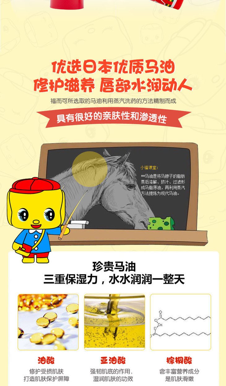 日本Fueki福而可【5g】儿童唇膏天然保湿滋润补水可食用宝宝孕妇婴儿润唇膏