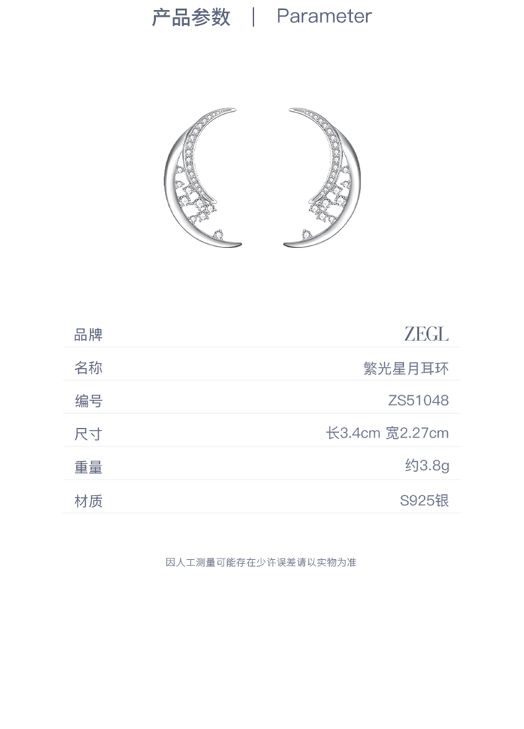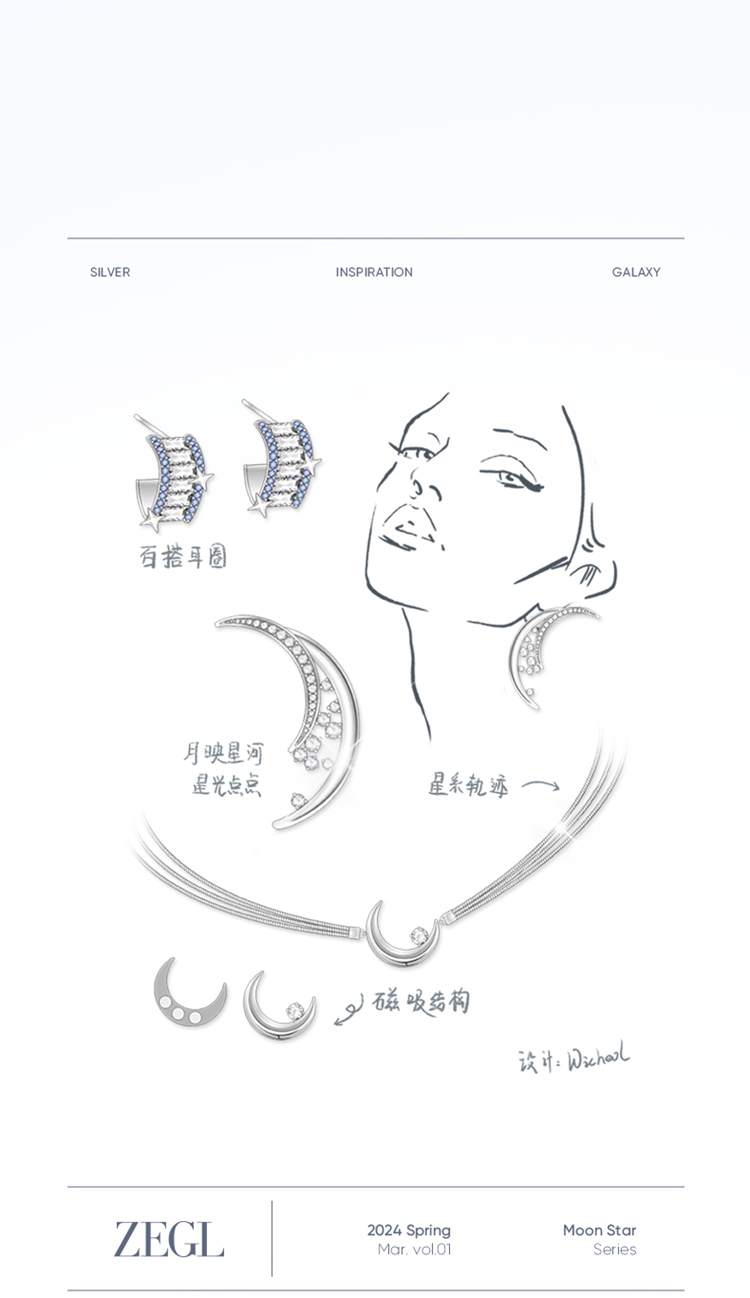 ZEGL设计师月映星河系列925银月亮耳环女2024新款高级感耳钉耳饰