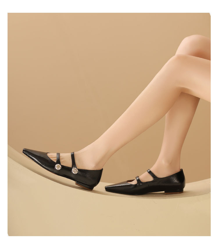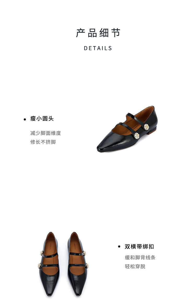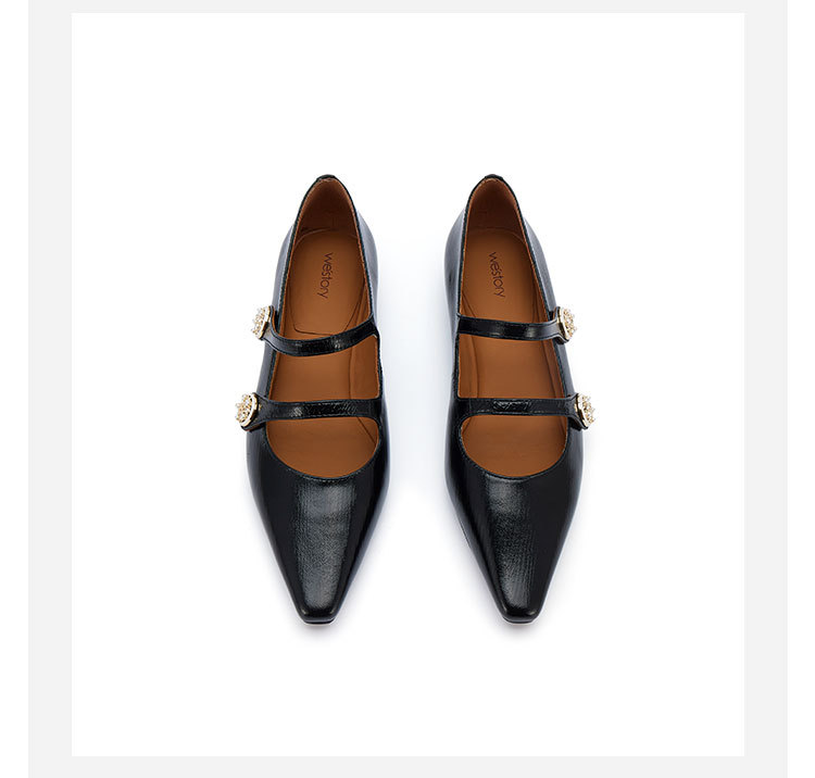 westory2024年春季新款低平跟尖头细带玛丽珍优雅气质女鞋S24AE56791