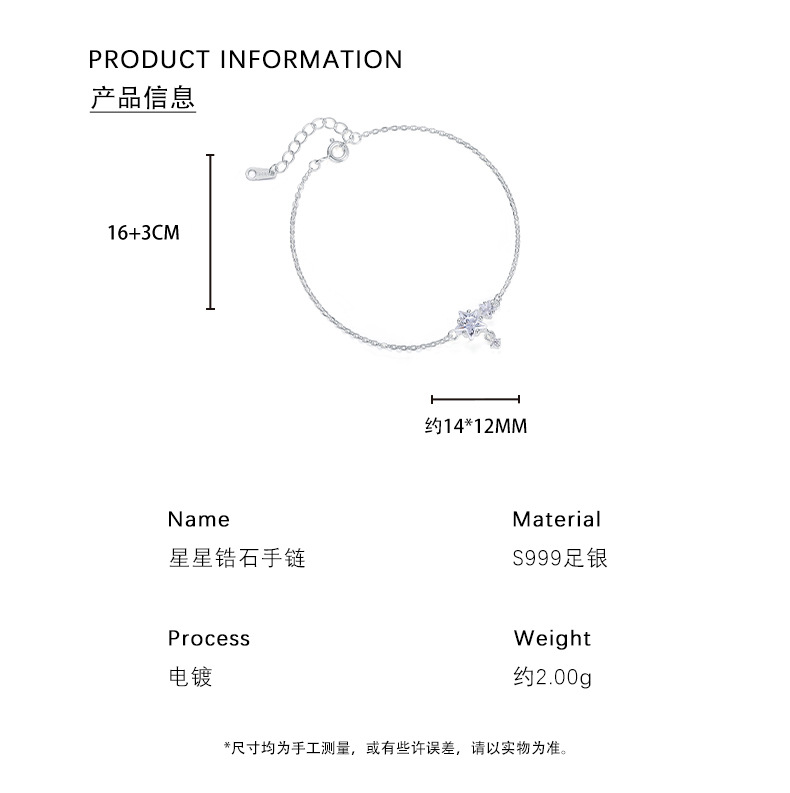 【许愿星星】S999纯银锆石星星手链【YXS-L1049】 商品图4