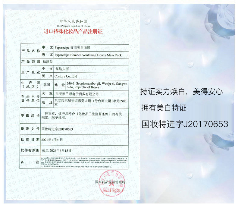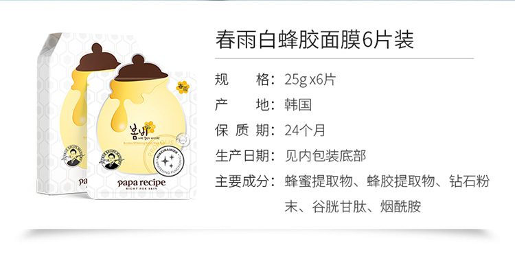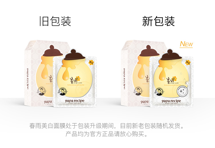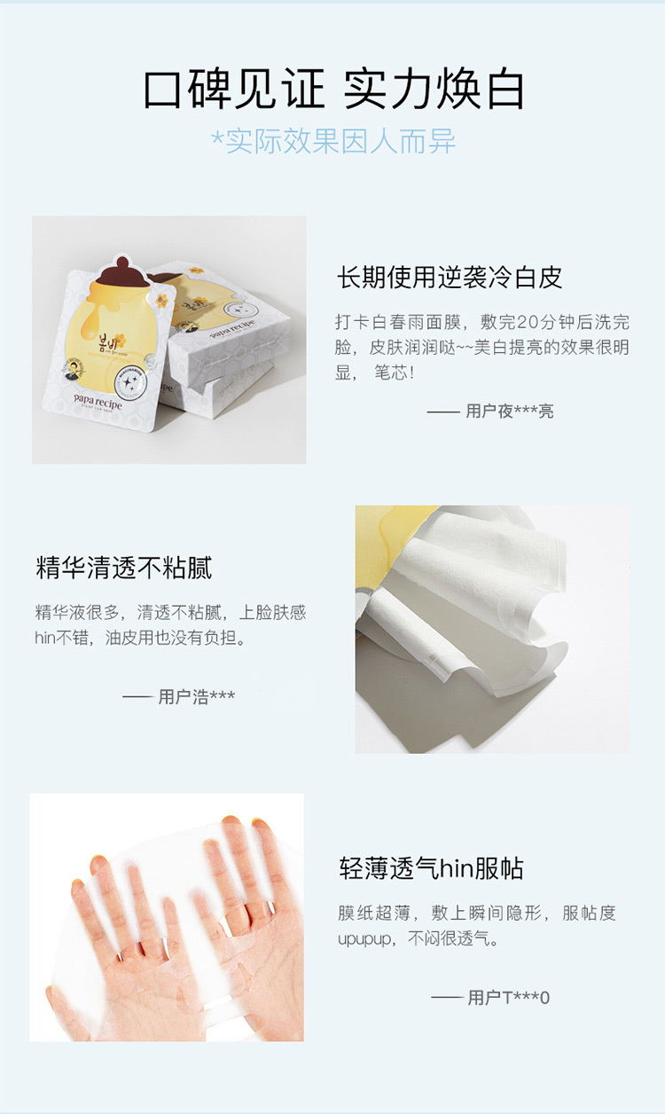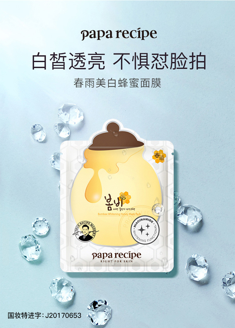 春雨Papa recipe 蜂蜜美白面膜 10片/盒 持证美白 敏肌适用 温和不刺激 水润透亮 敏肌挚爱