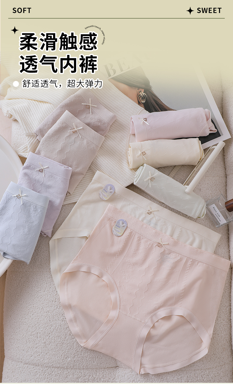 加大版女士高腰内裤蝴蝶结甜美可爱性感少女桑蚕丝抑菌裆0323