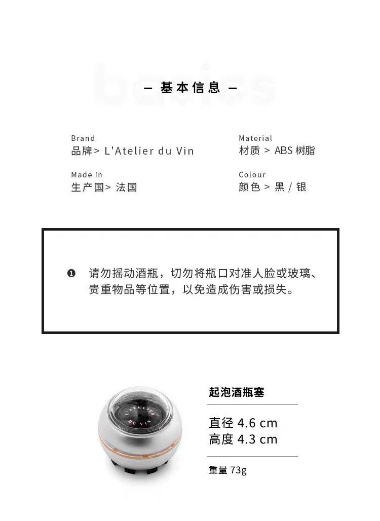 法国L'Atelier du Vin起泡酒瓶塞压力监测密封盖家用气泡酒香槟塞